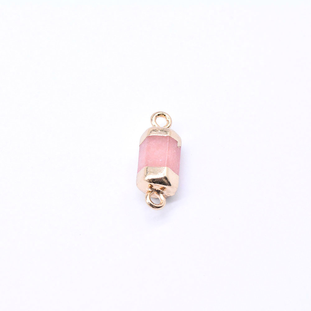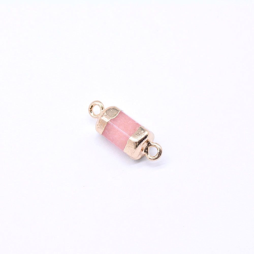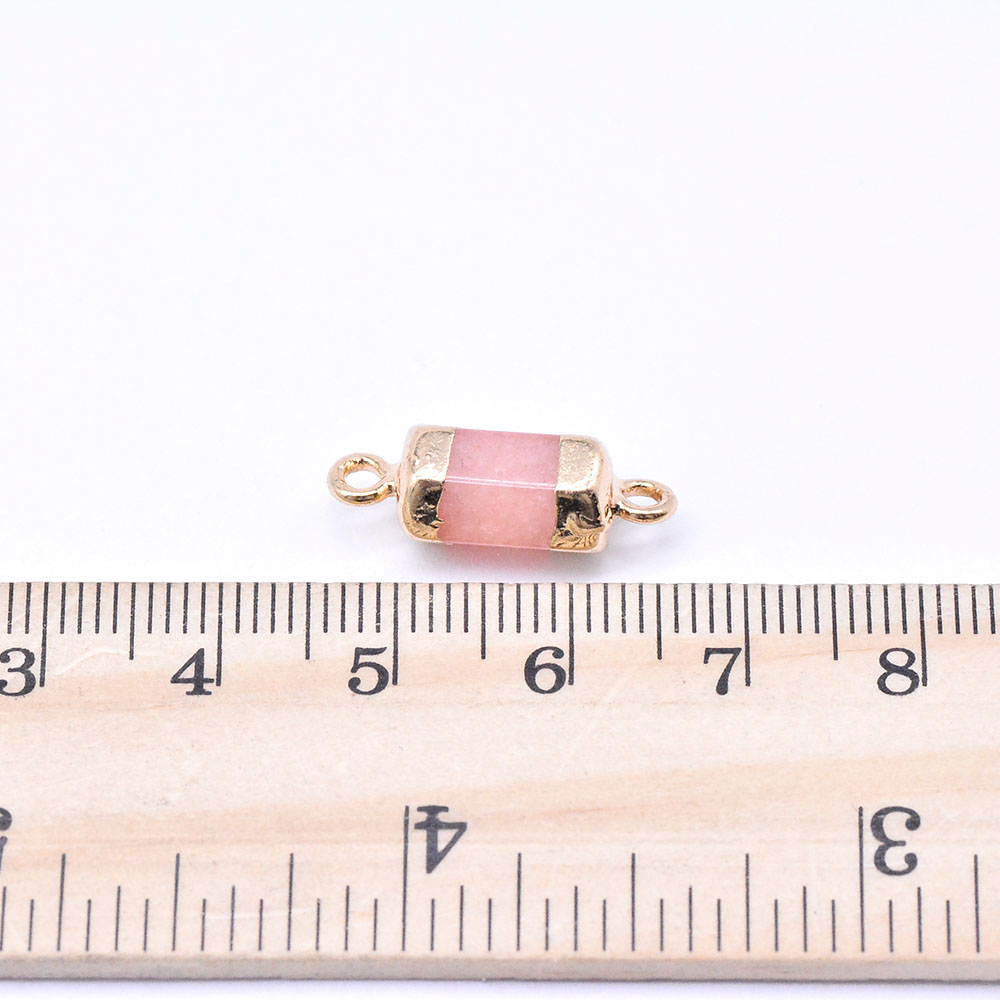 天然石コネクターチャーム ローズクォーツ 円柱 2カン 7×20mm ゴールド (1ヶ)