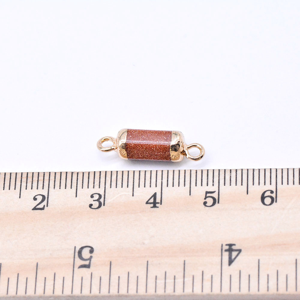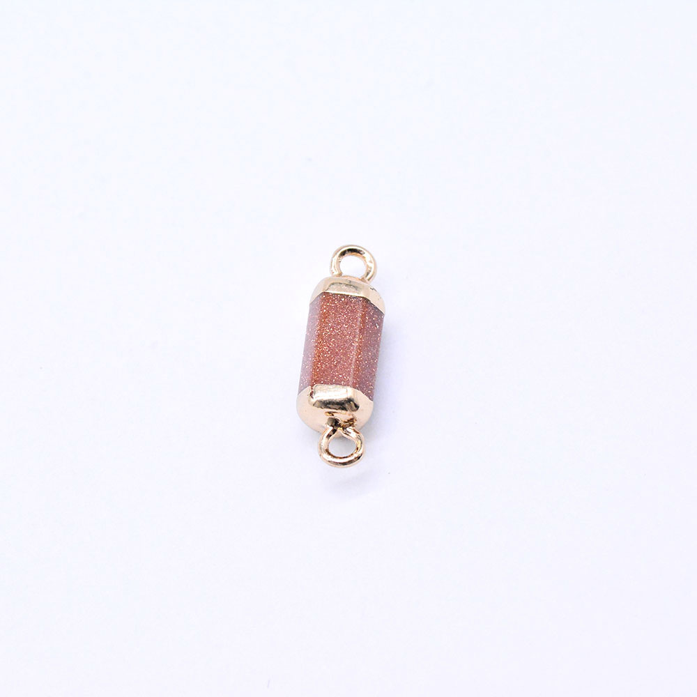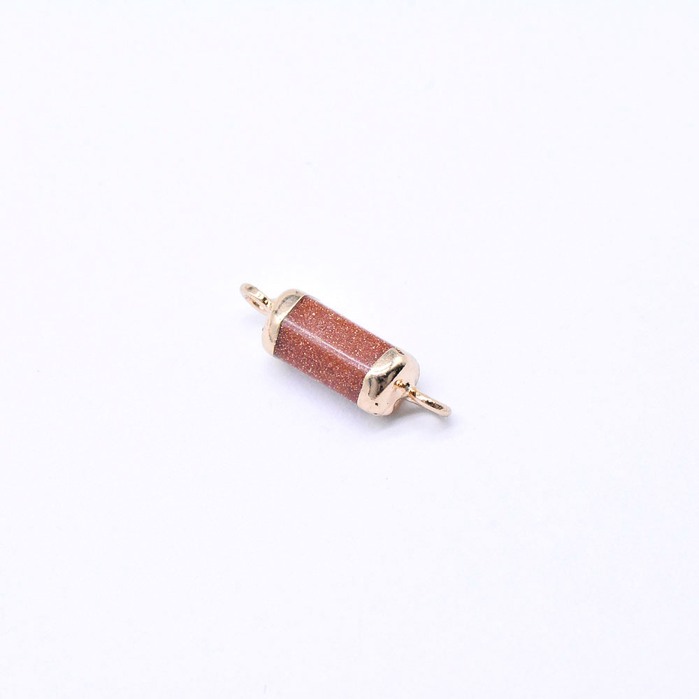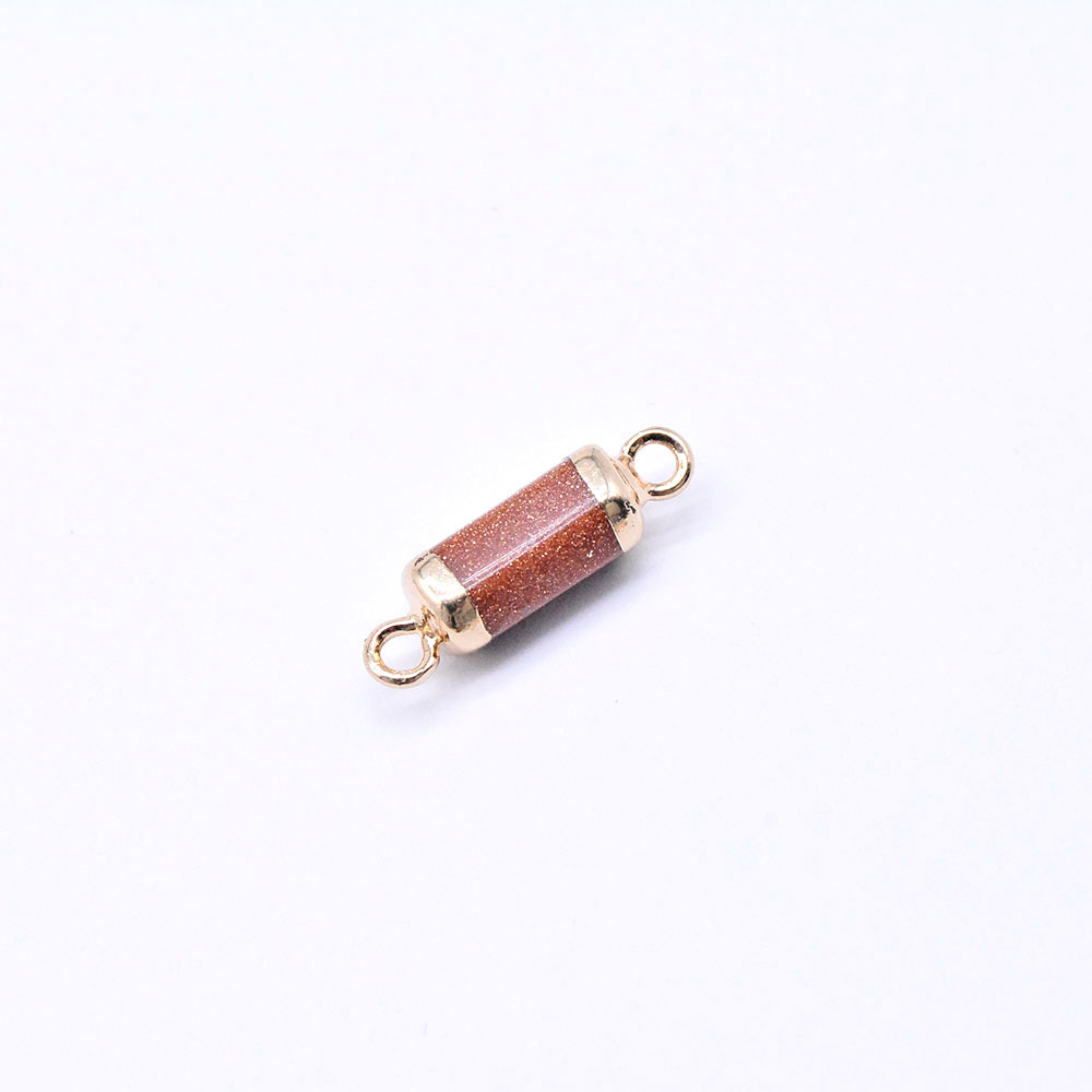 天然石コネクターチャーム ゴールドストーン 円柱型 2カン 5×19mm ゴールド (1ヶ)