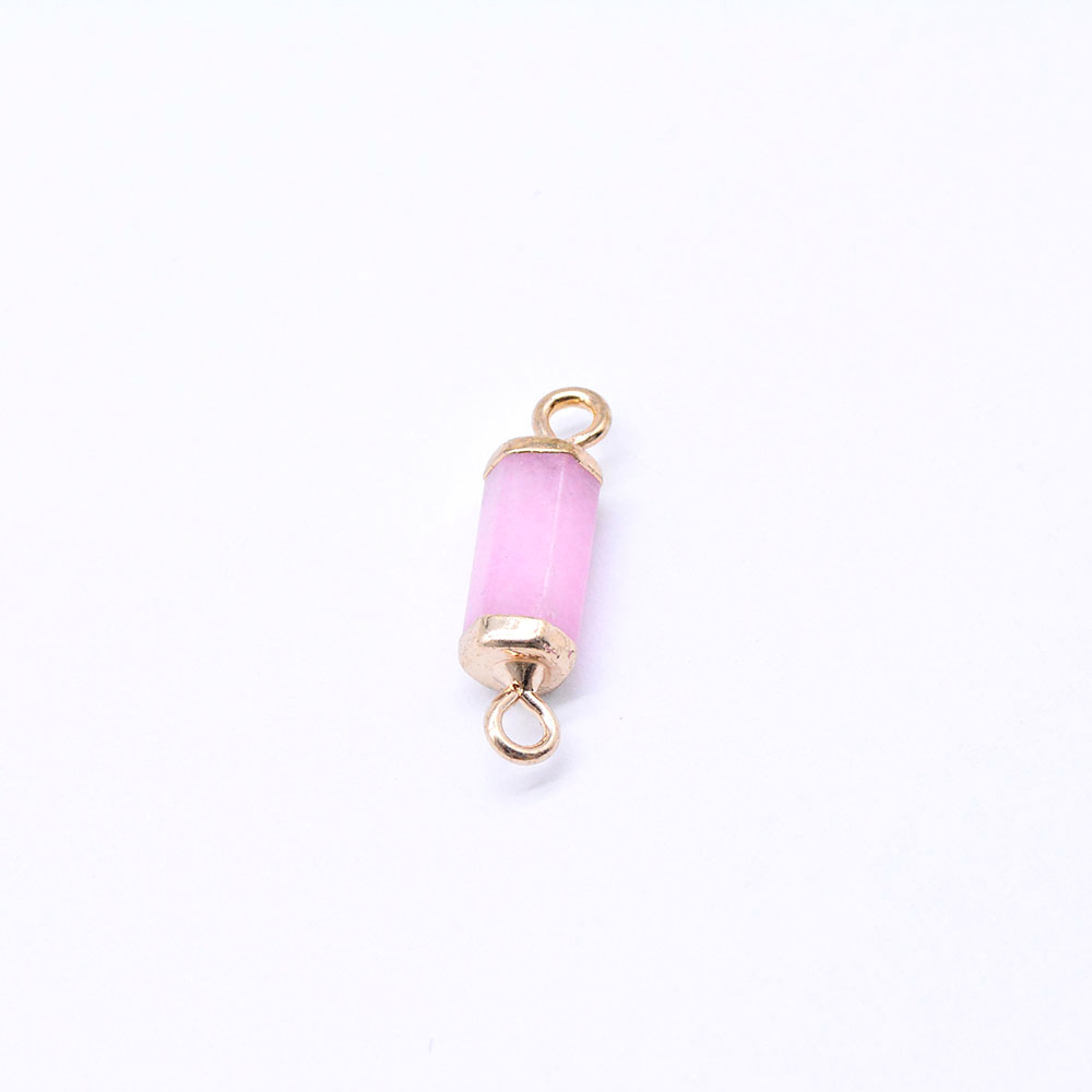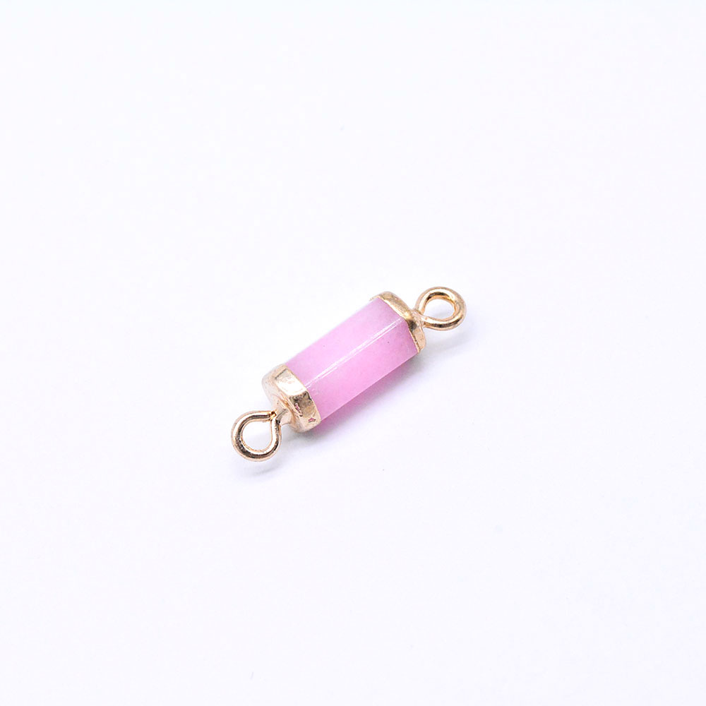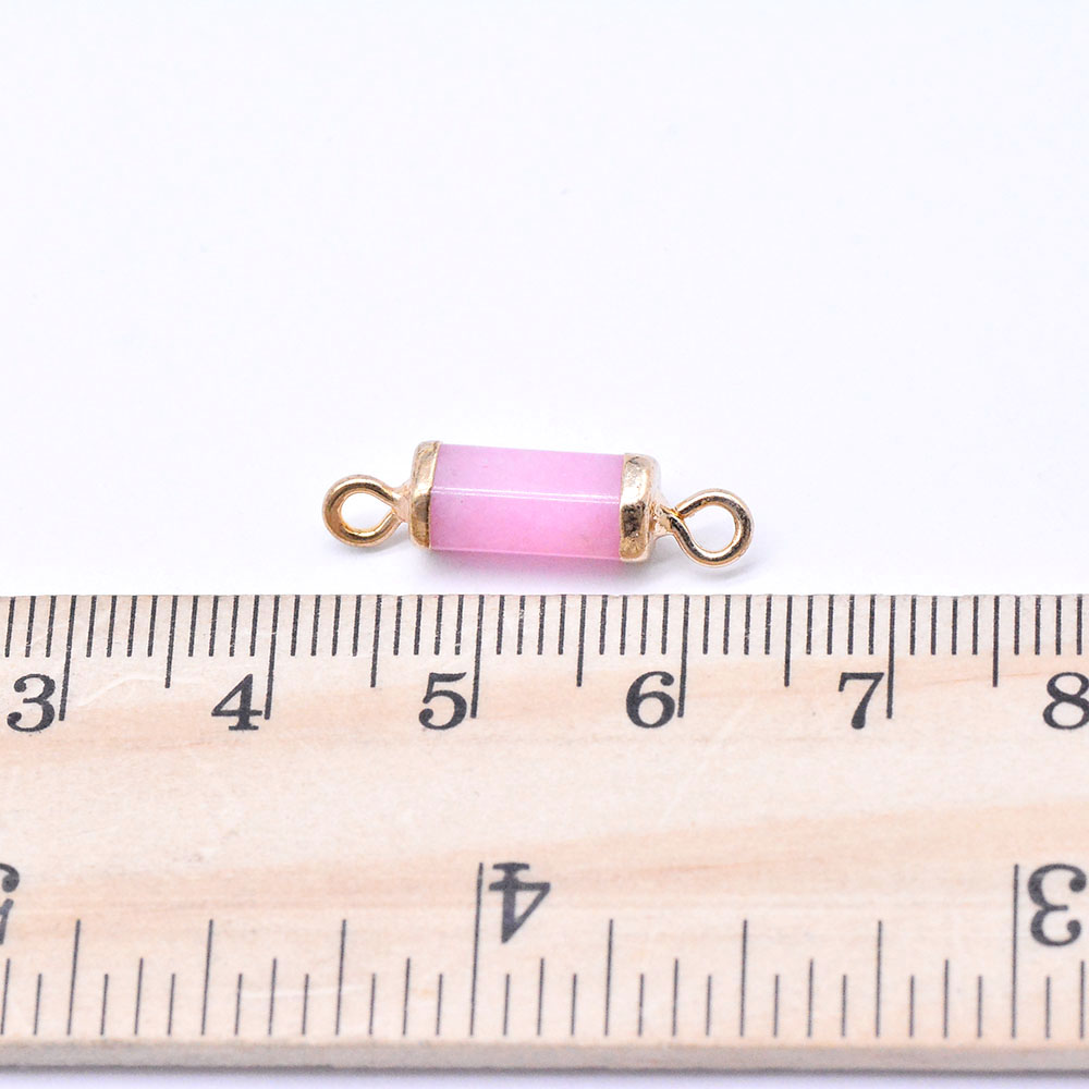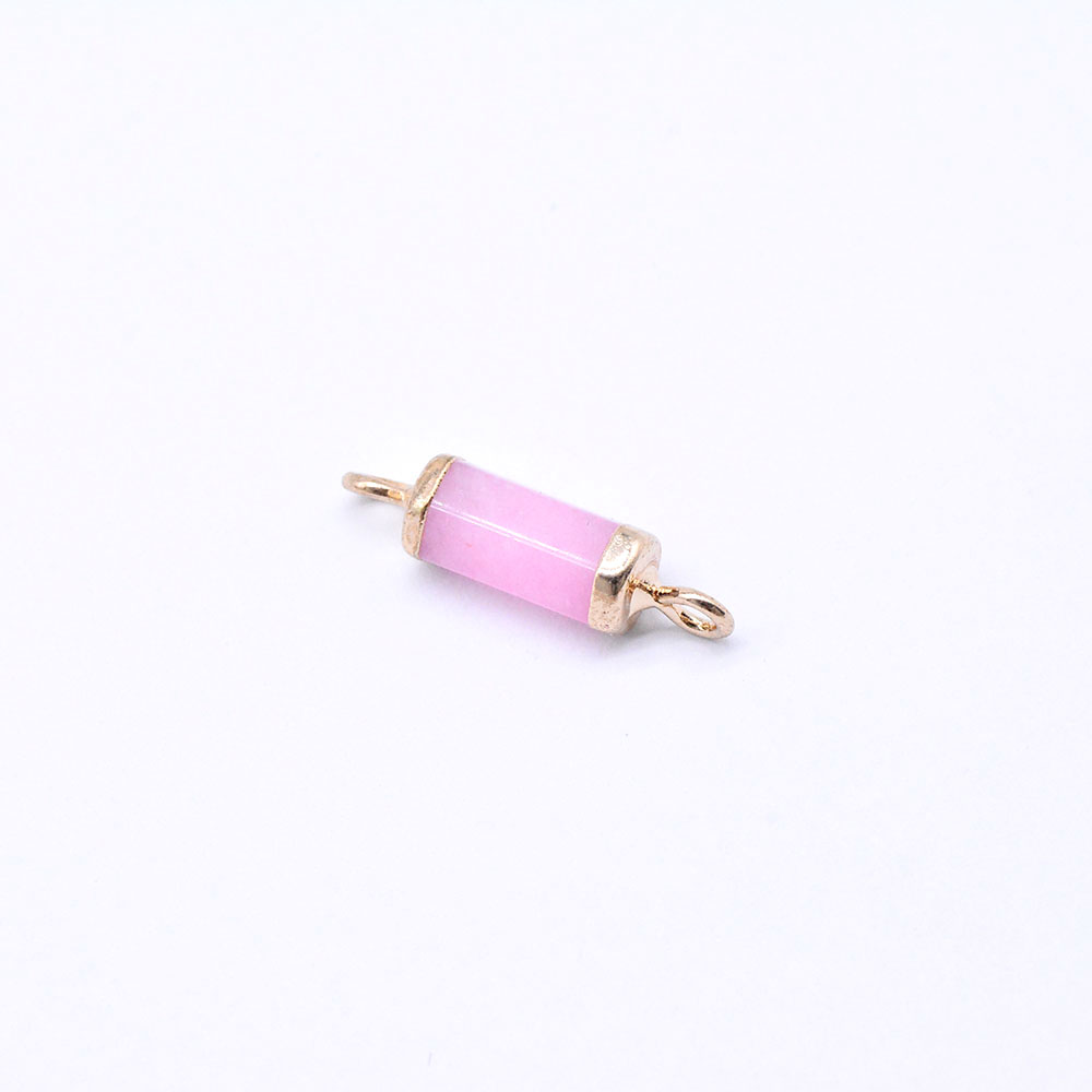 天然石コネクターチャーム ローズクォーツ 円柱型 2カン 6×21mm ゴールド (1ヶ)