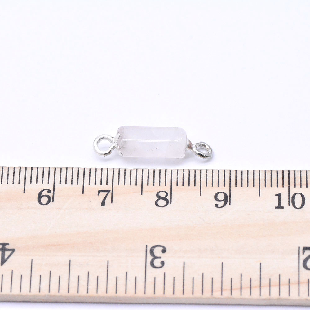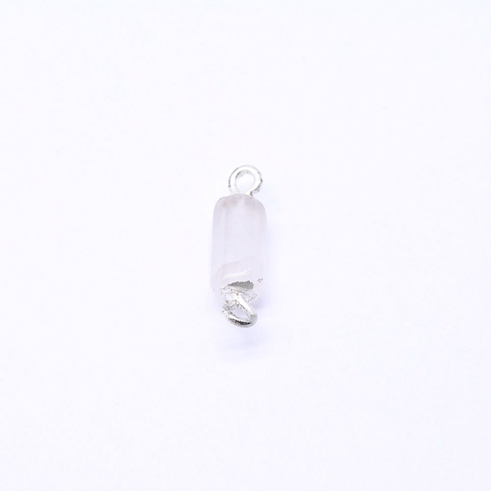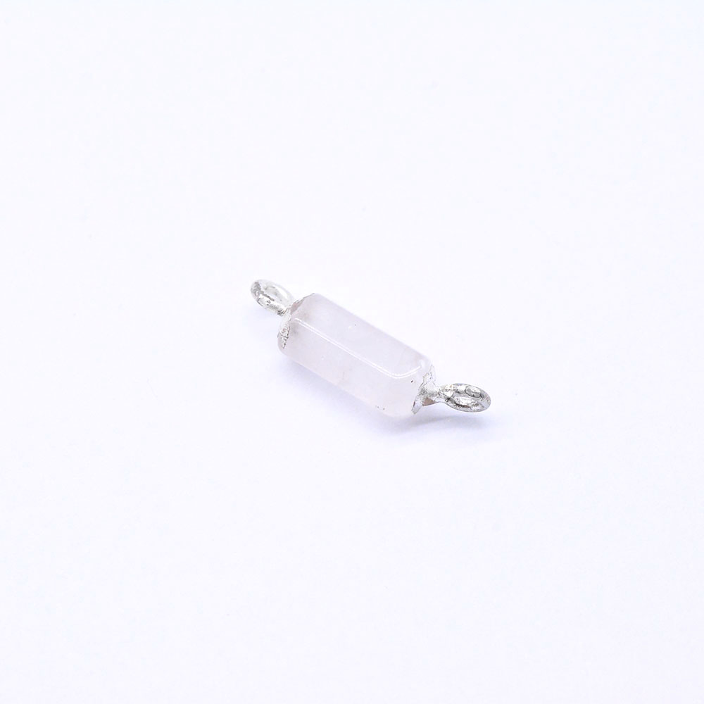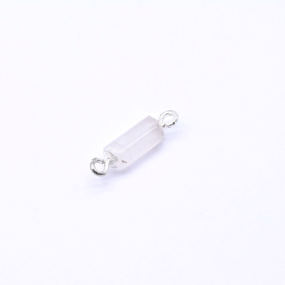 天然石コネクターチャーム ホワイトジェイド 円柱型 2カン 5×21mm ロジウム (1ヶ)