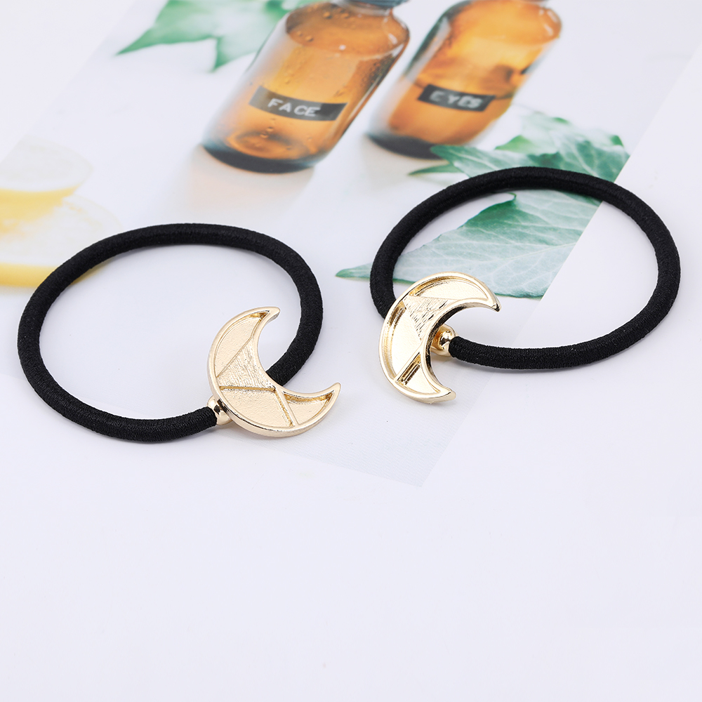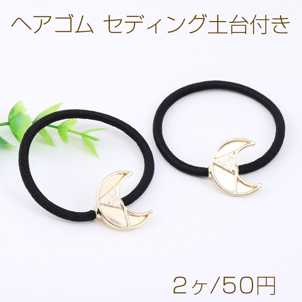 ヘアゴム セディング土台付き 月型 20×25mm ゴールド/ブラック(2ヶ)