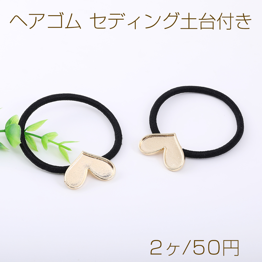 ヘアゴム セディング土台付き ハートA 19×29mm ゴールド/ブラック(2ヶ)