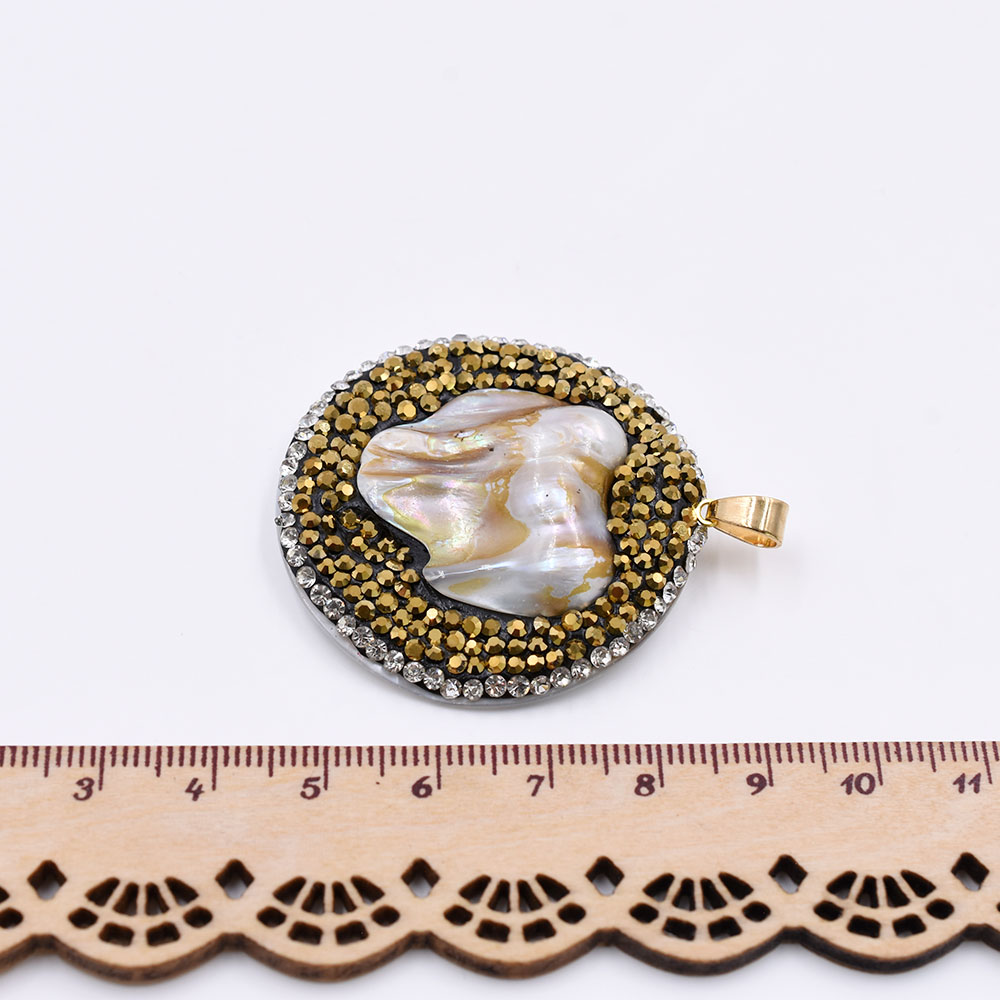 ラインストーン付きパールペンダントトップ 1カン 42x40mm
