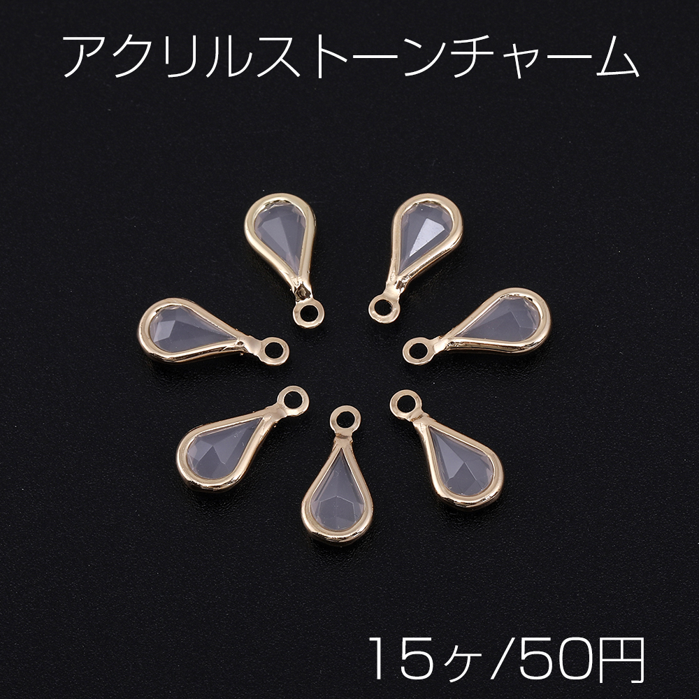 アクリルストーンチャーム 雫型 1カン 7×14mm ゴールド(15ヶ)