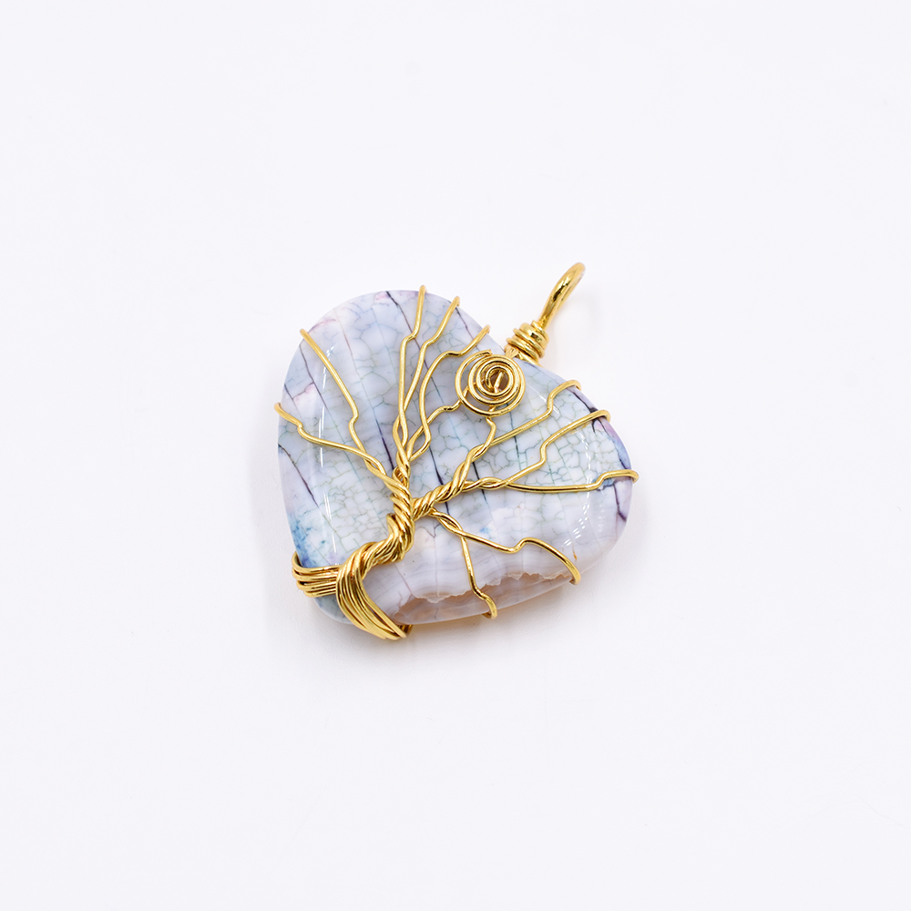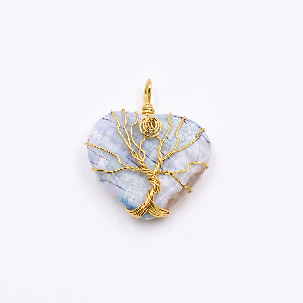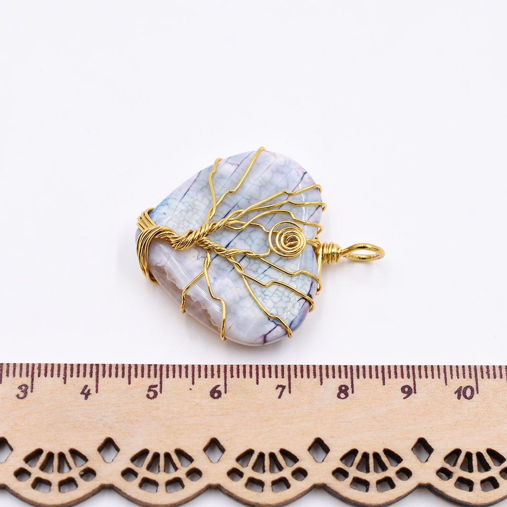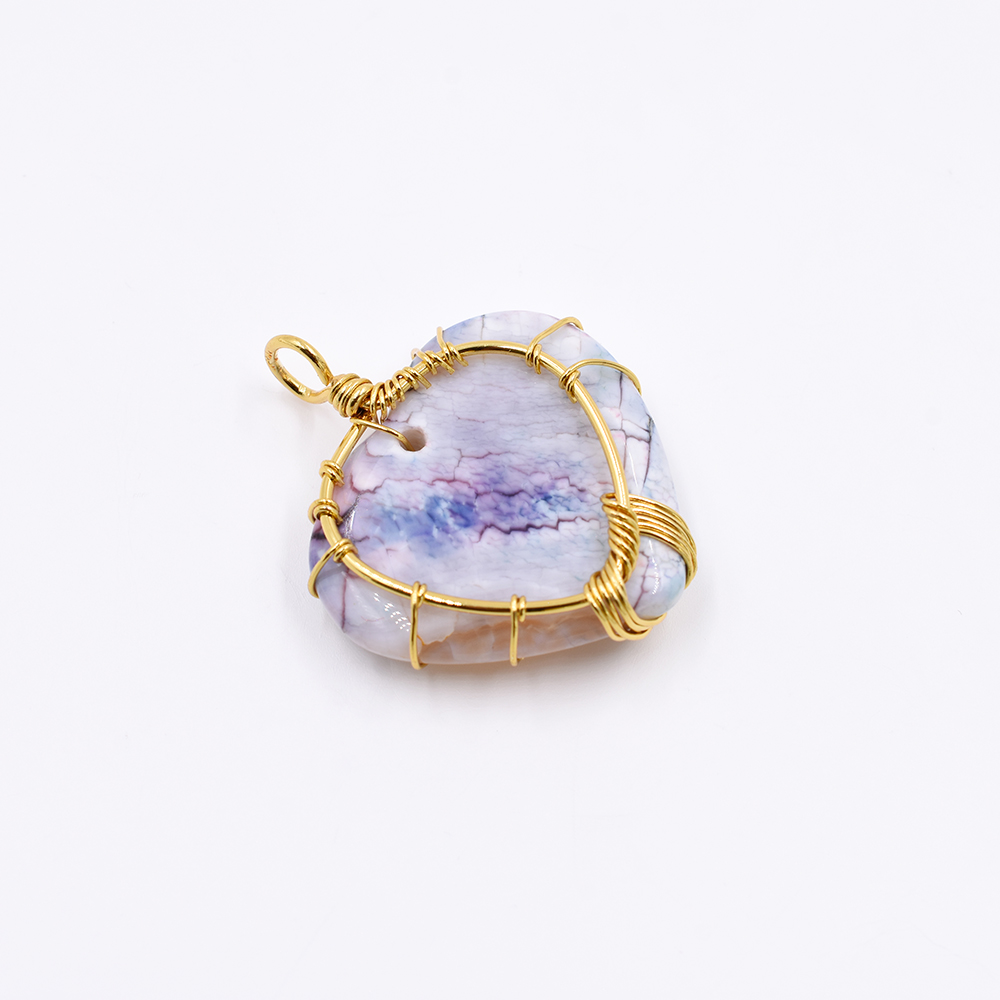 天然石チャーム 1カンつき ハート ブルー 40x34mm ゴールド(1ヶ)