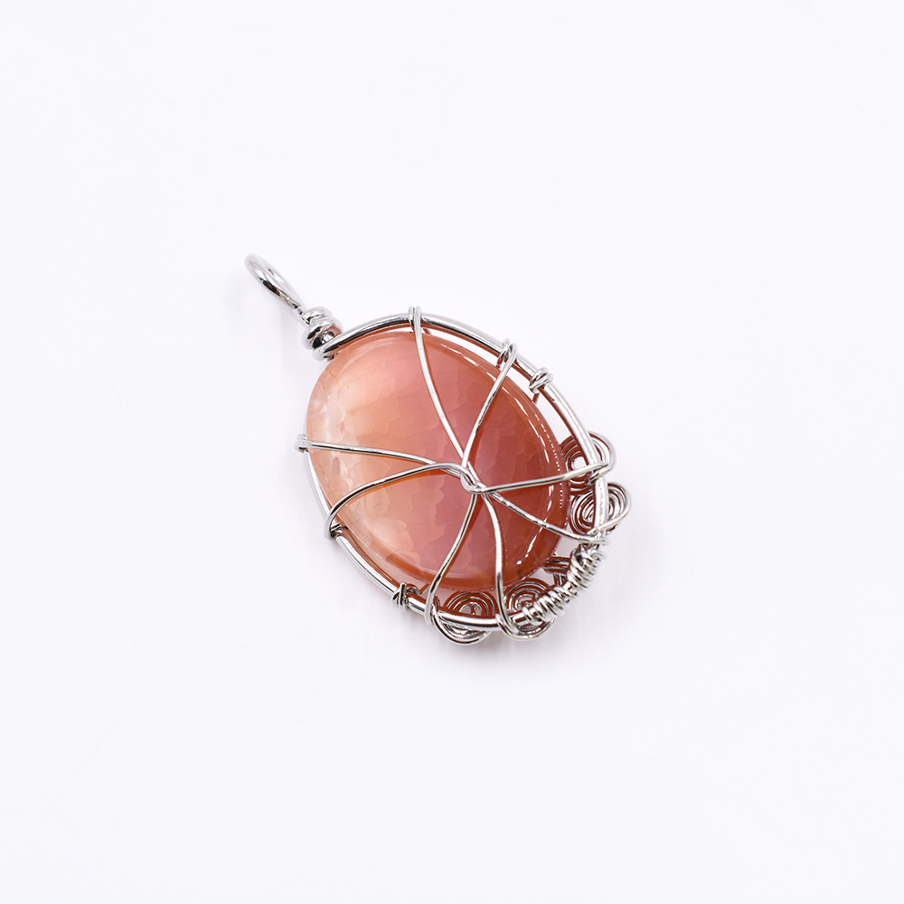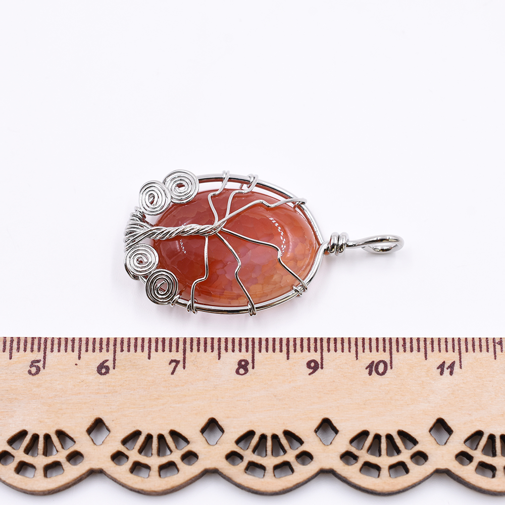 天然石チャーム 1カンつき 楕円形 オレンジ 41x22mm ロジウム(1ヶ)
