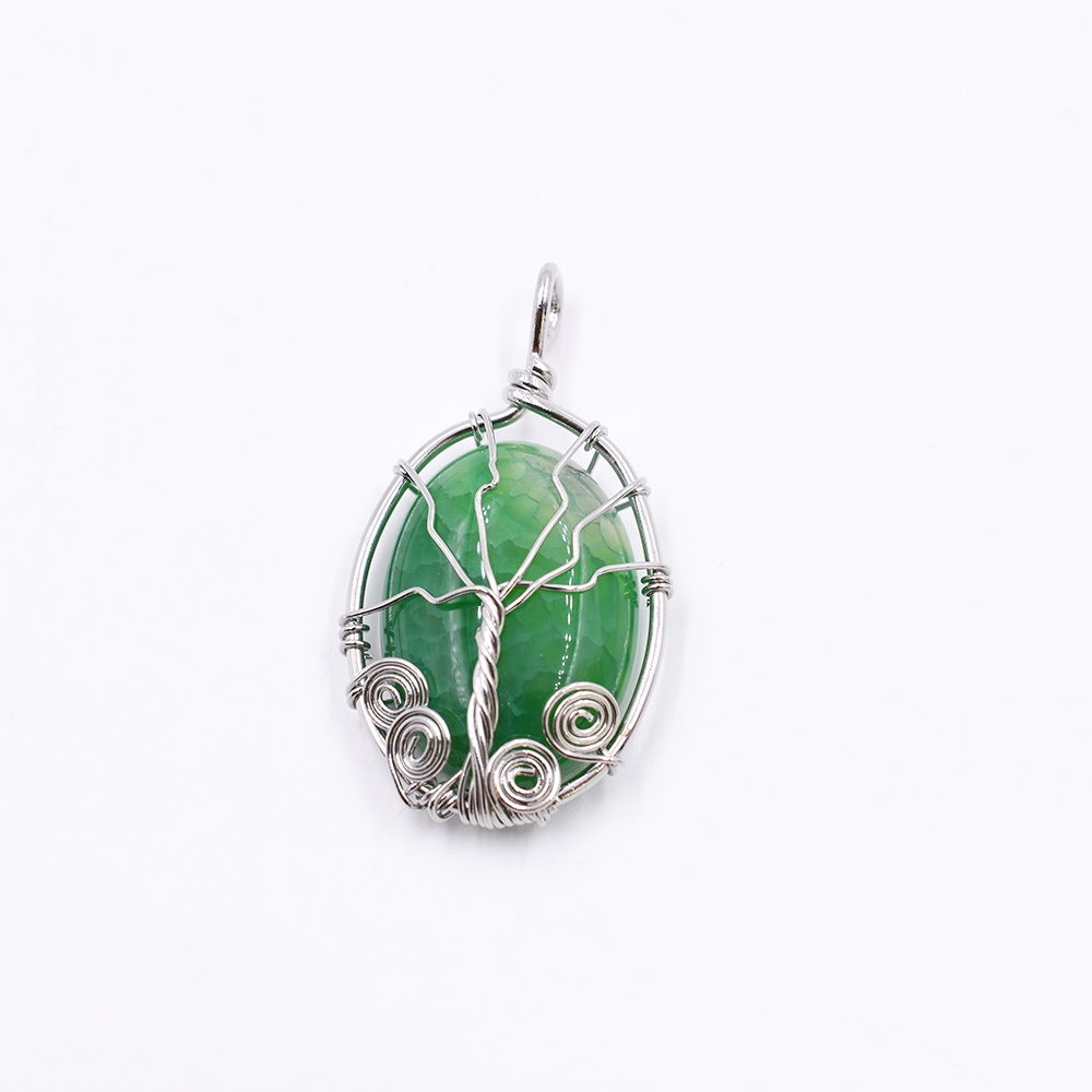 天然石チャーム 1カンつき 楕円形 グリーン 41x22mm ロジウム(1ヶ)