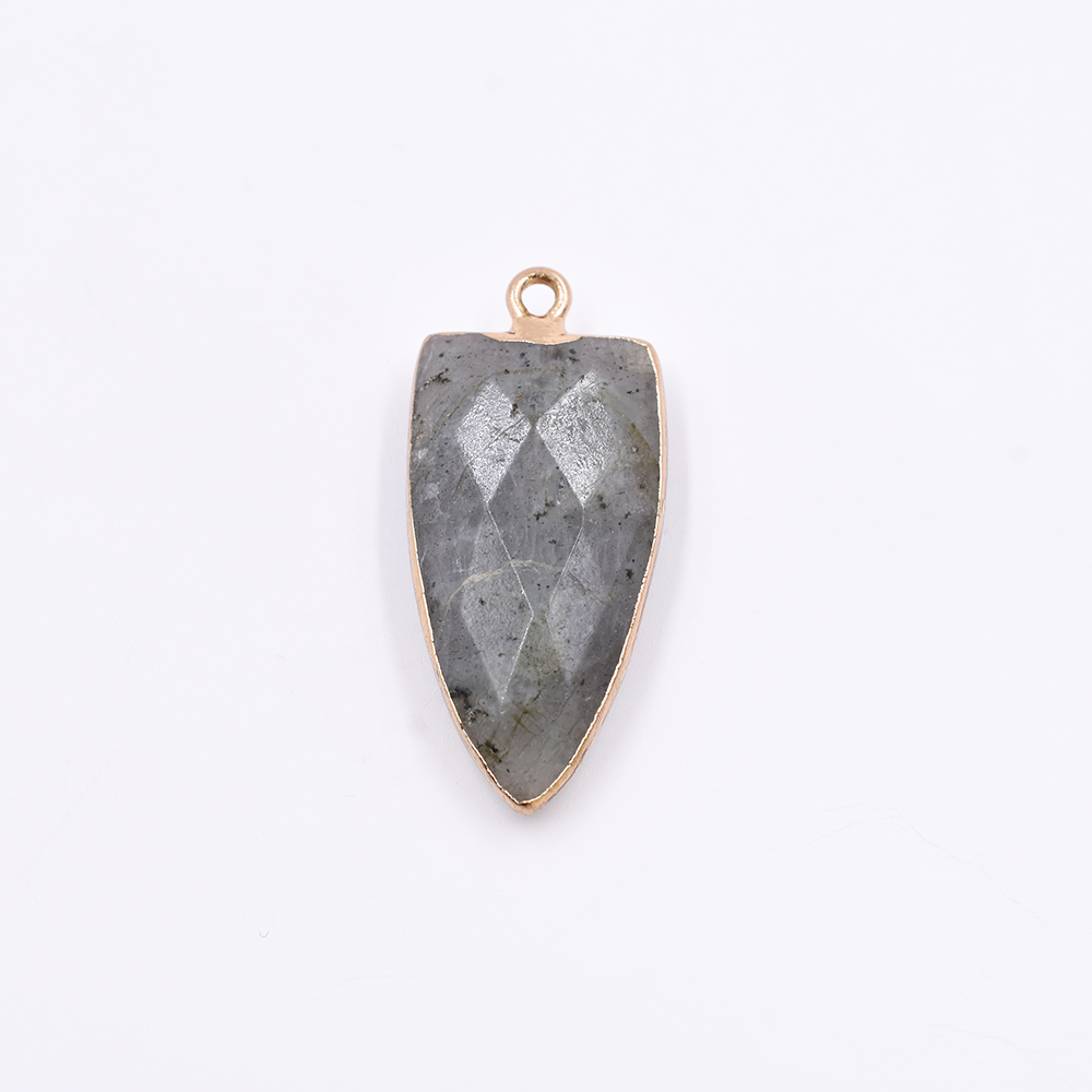 天然石チャーム 1カンつき 三角形カット グレー 37x16mm ゴールド(1ヶ)
