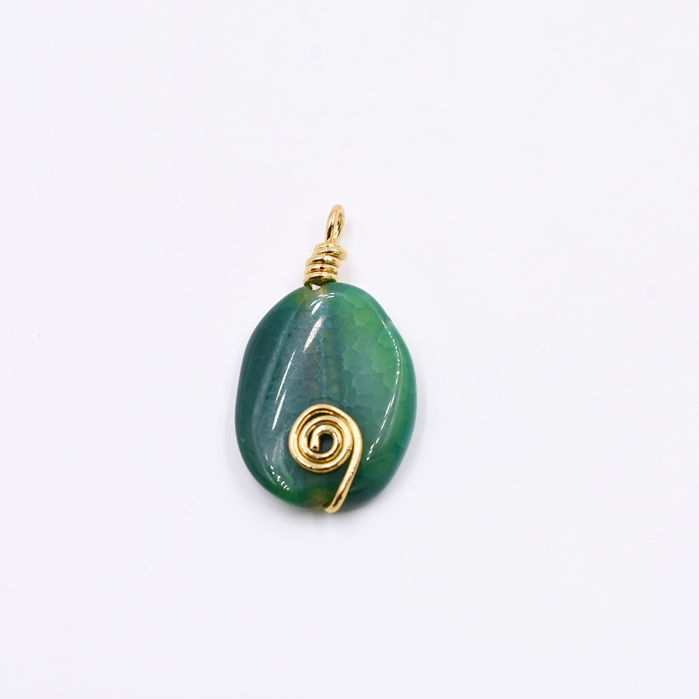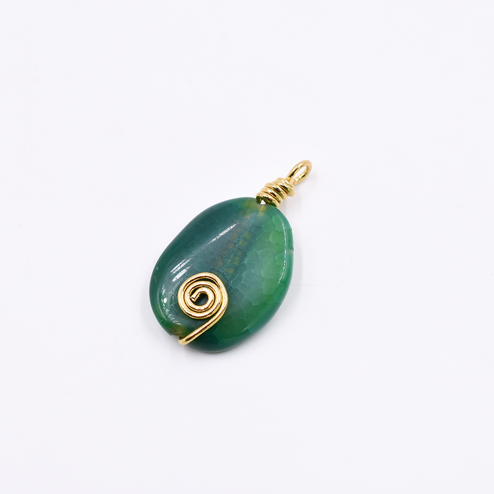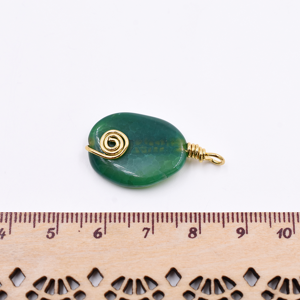 天然石チャーム 1カンつき 楕円形 グリーン 30x17mm ゴールド(1ヶ)