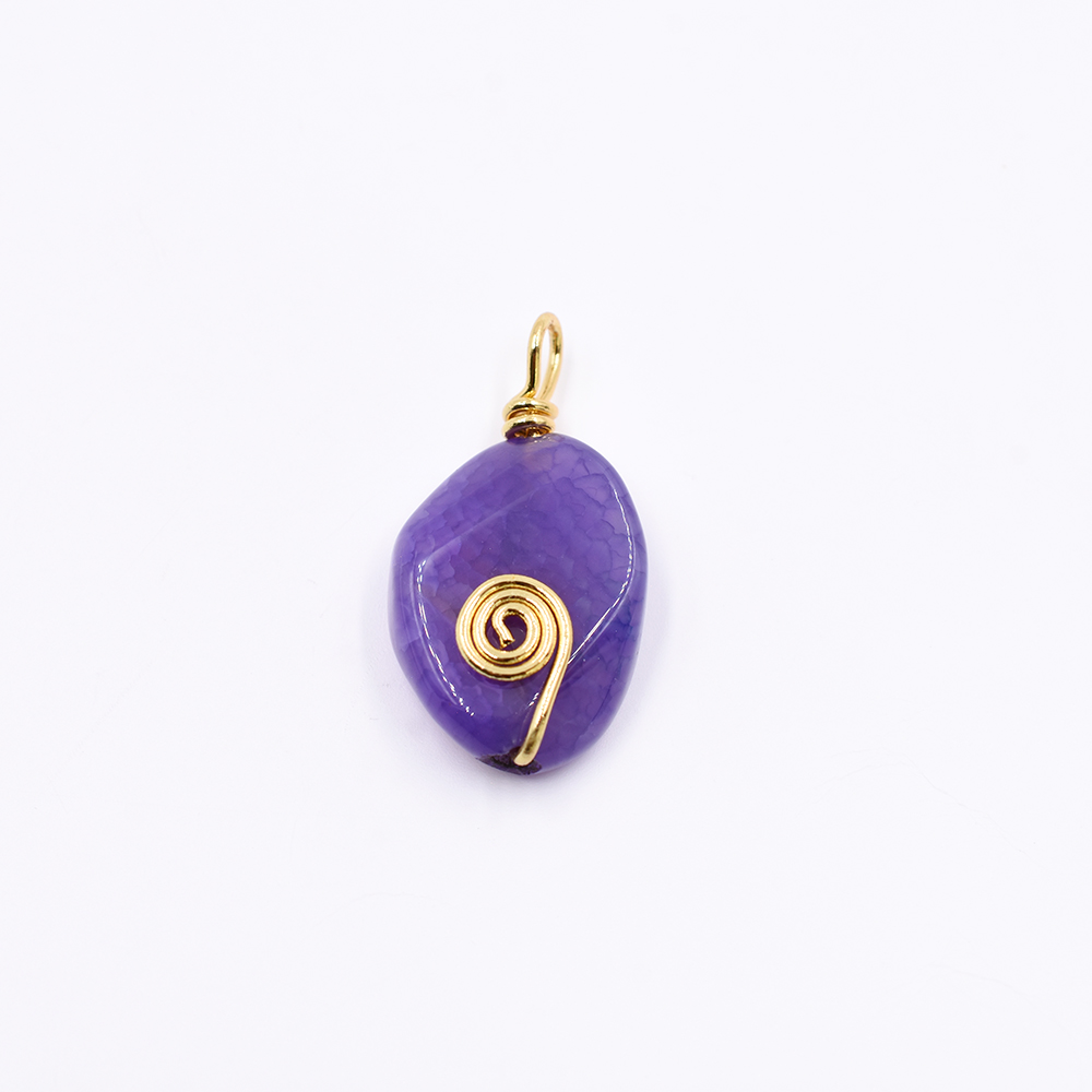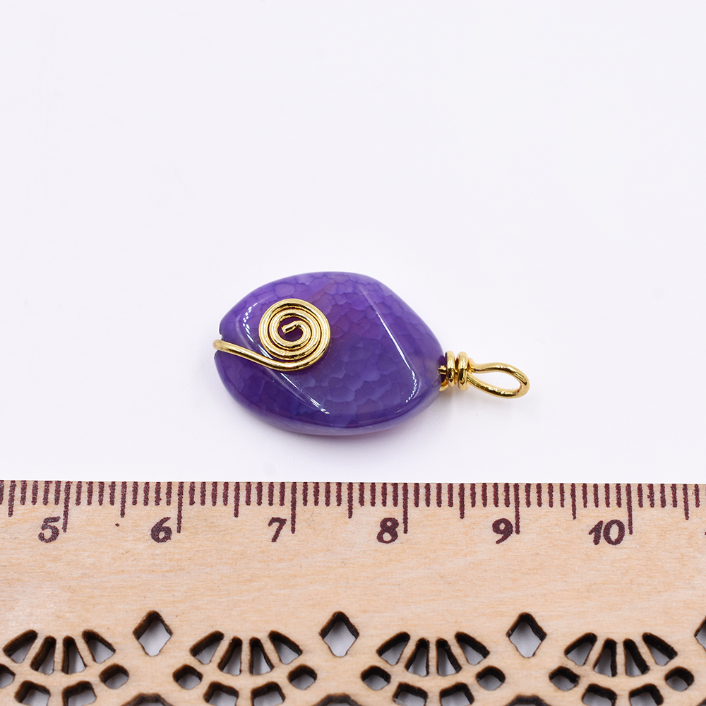 天然石チャーム 1カンつき 楕円形 パープル 29x16mm ゴールド(1ヶ)