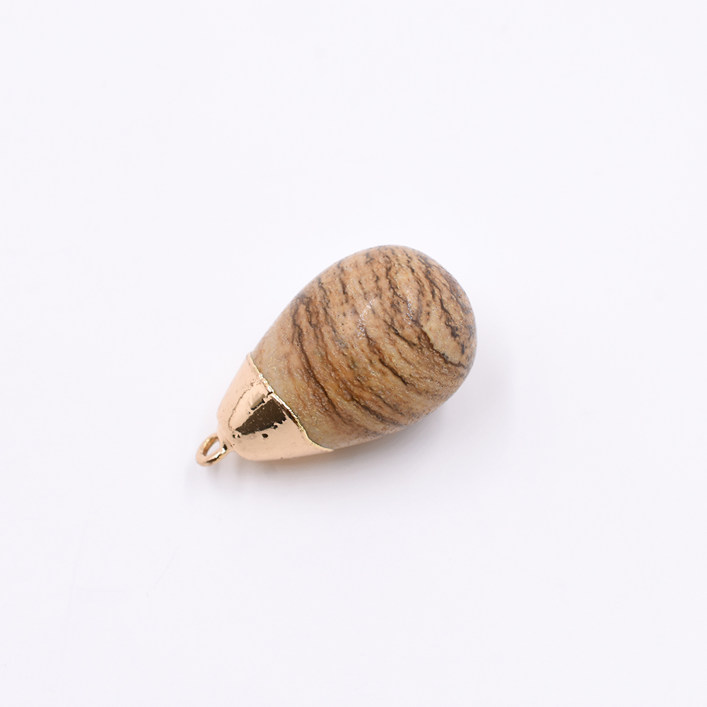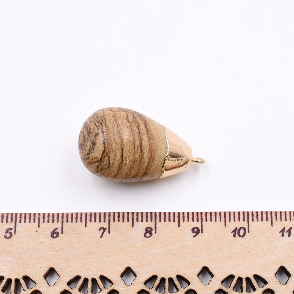 天然石チャーム 1カンつき 雫形 ベージュ 28x16mm ゴールド(1ヶ)