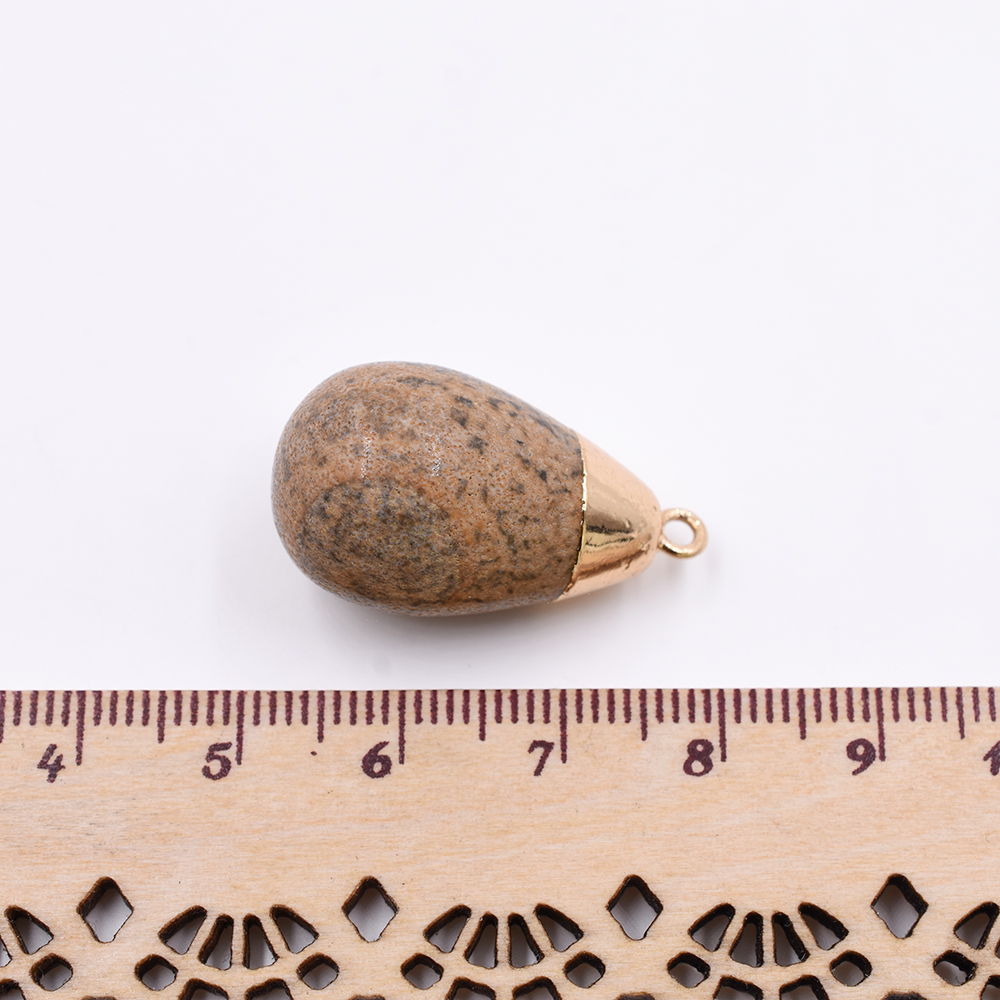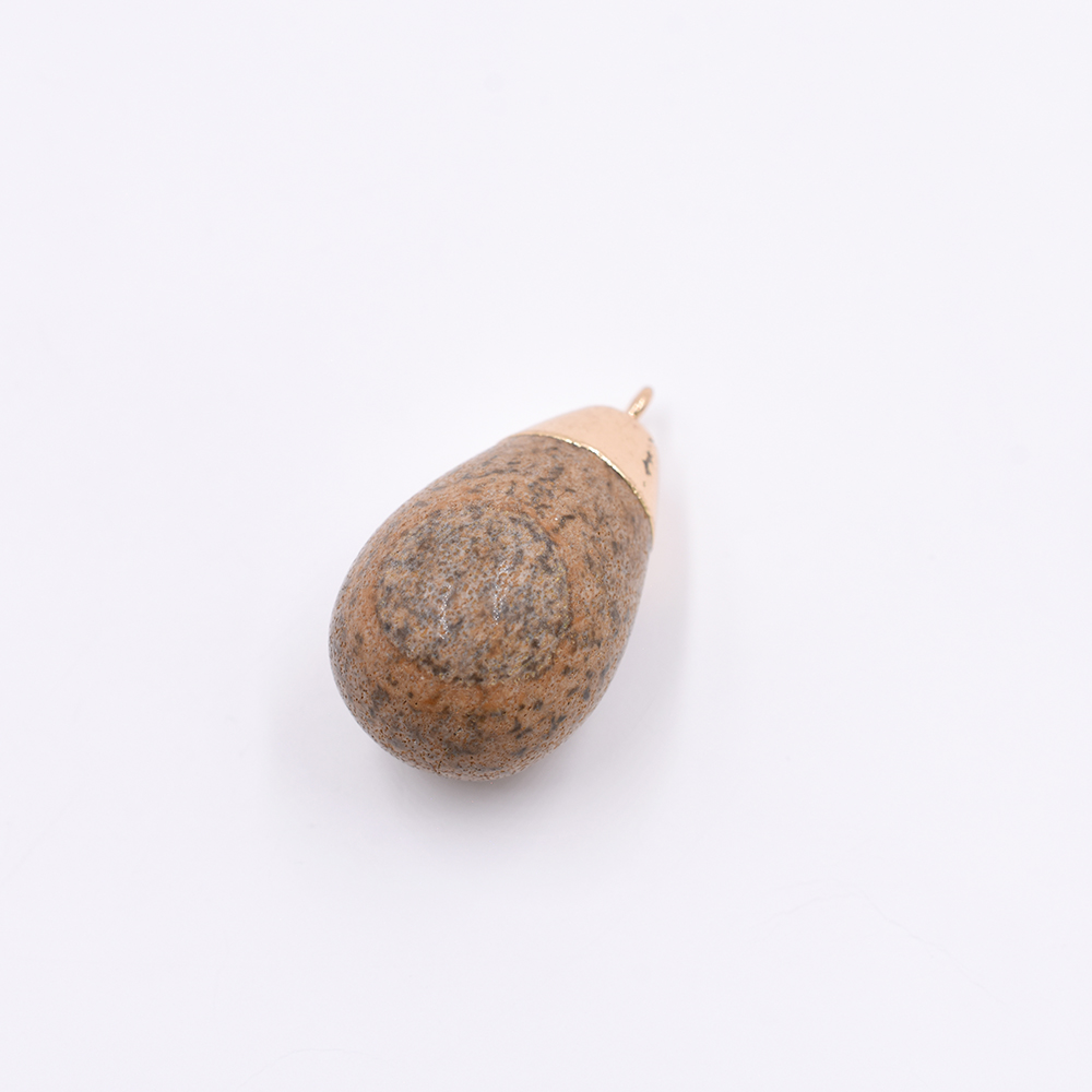 天然石チャーム 1カンつき 雫形 ベージュ 28x16mm ゴールド(1ヶ)