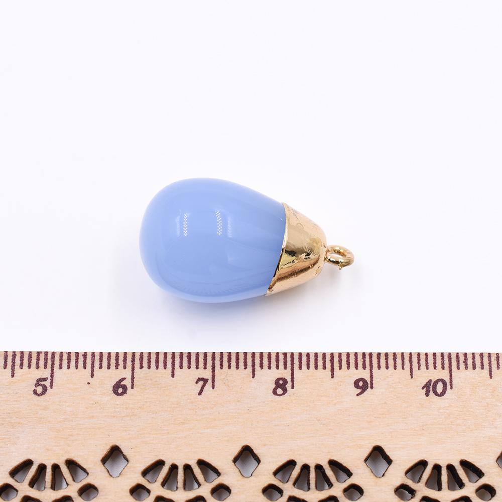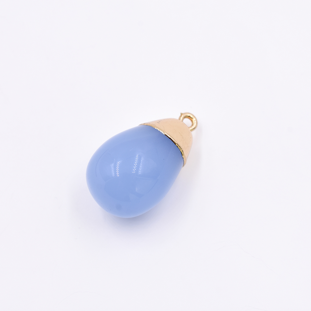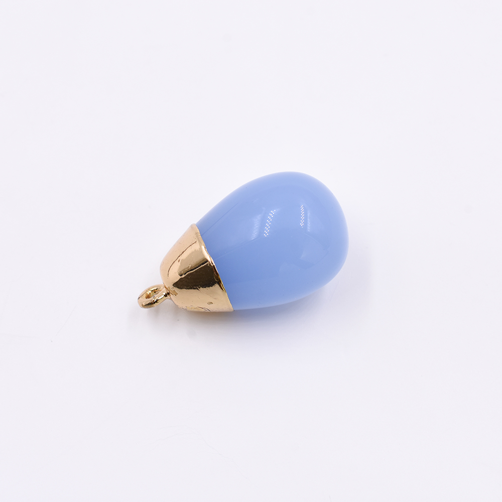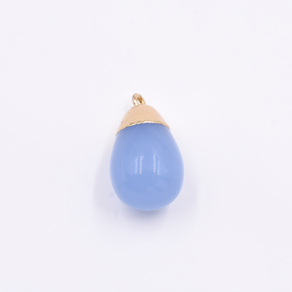 天然石チャーム 1カンつき 雫形 ブルー 28x16mm ゴールド(1ヶ)