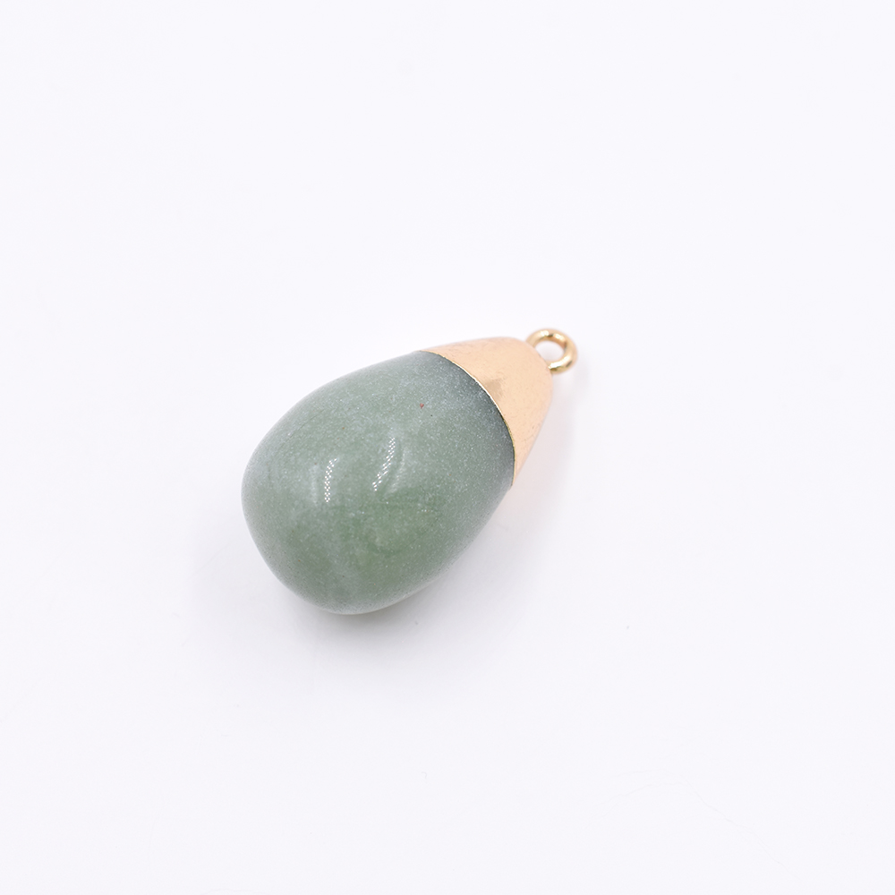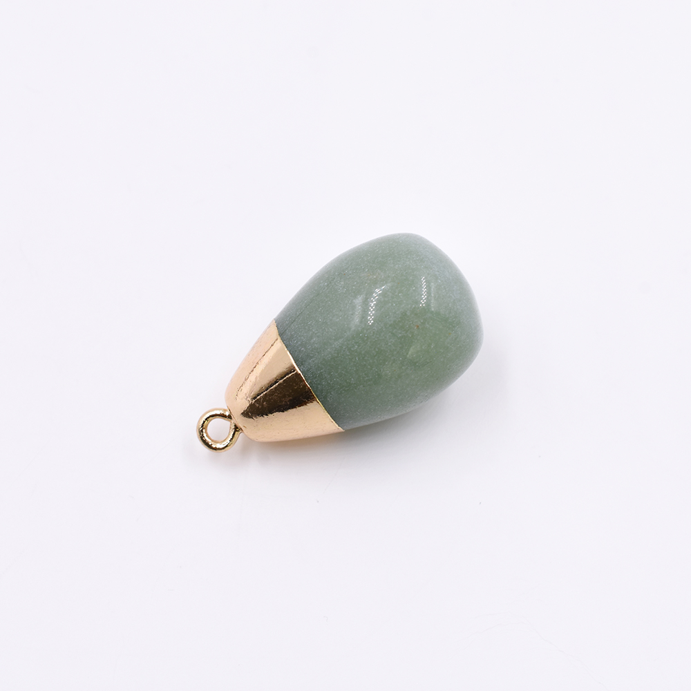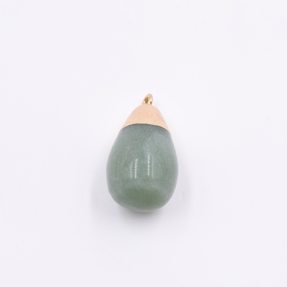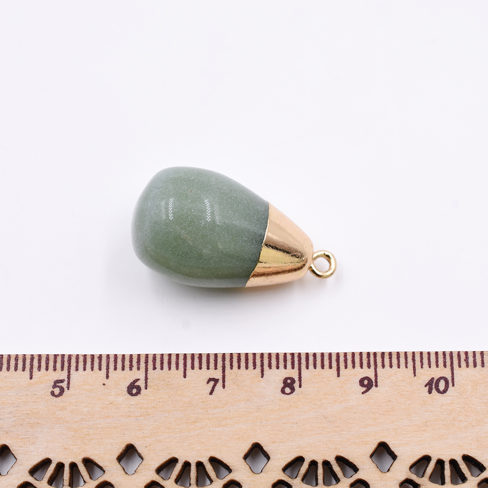 天然石チャーム 1カンつき 雫形 グリーン 28x15mm ゴールド(1ヶ)