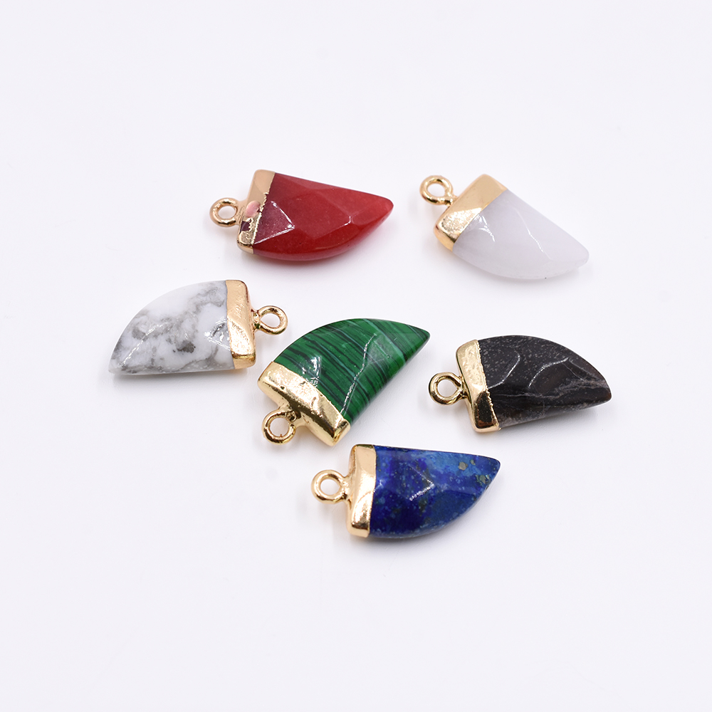 天然石チャーム 1カンつき 三角形カット 21x10mm 全6色 ゴールド(1ヶ)
