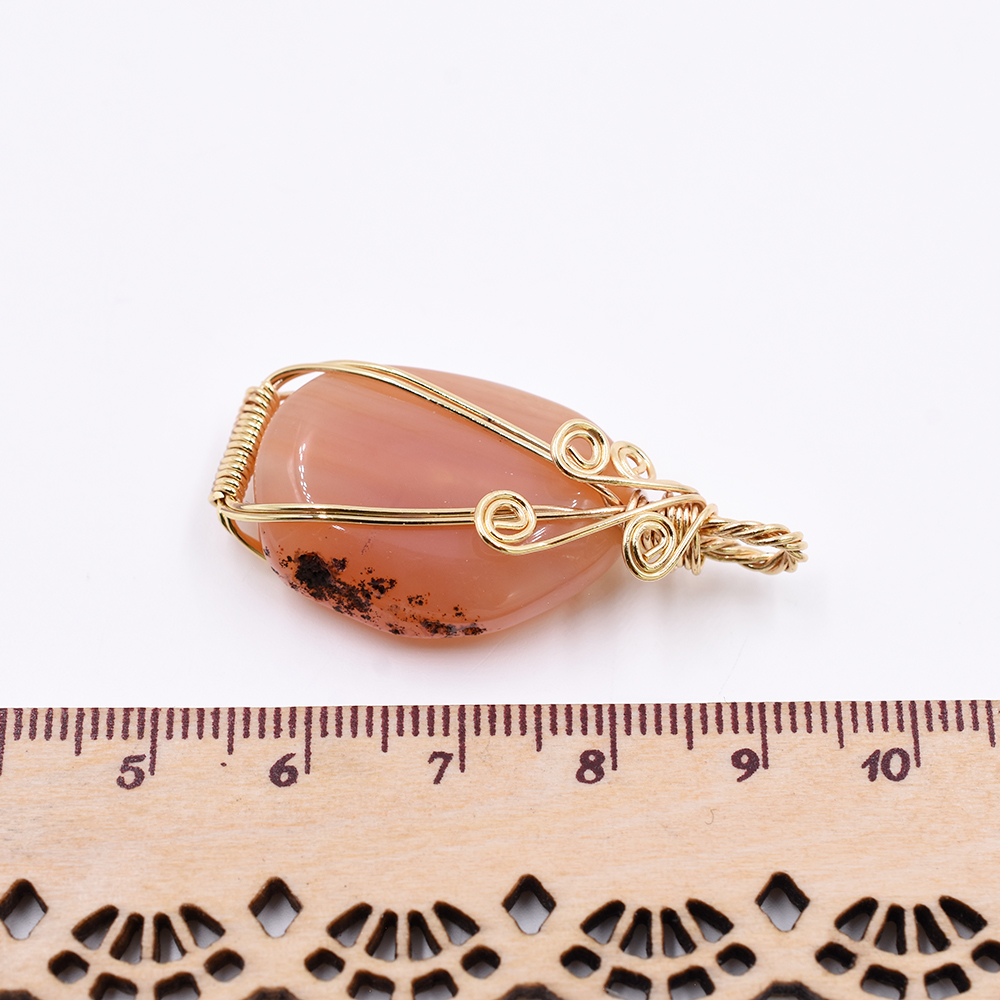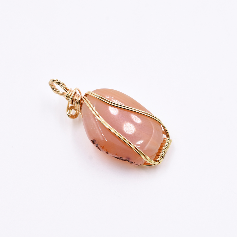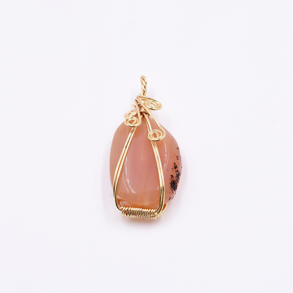天然石チャーム 1カンつき 楕円形 オレンジ 40x19mm ゴールド(1ヶ)