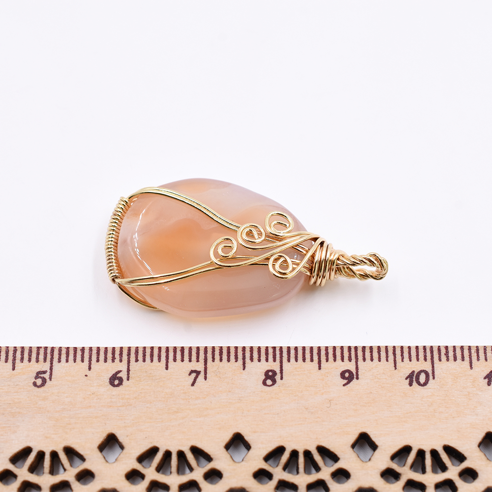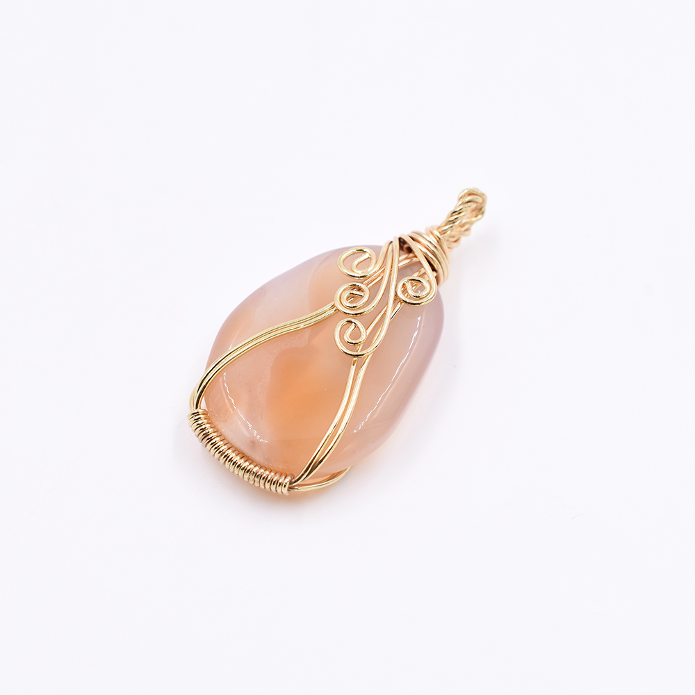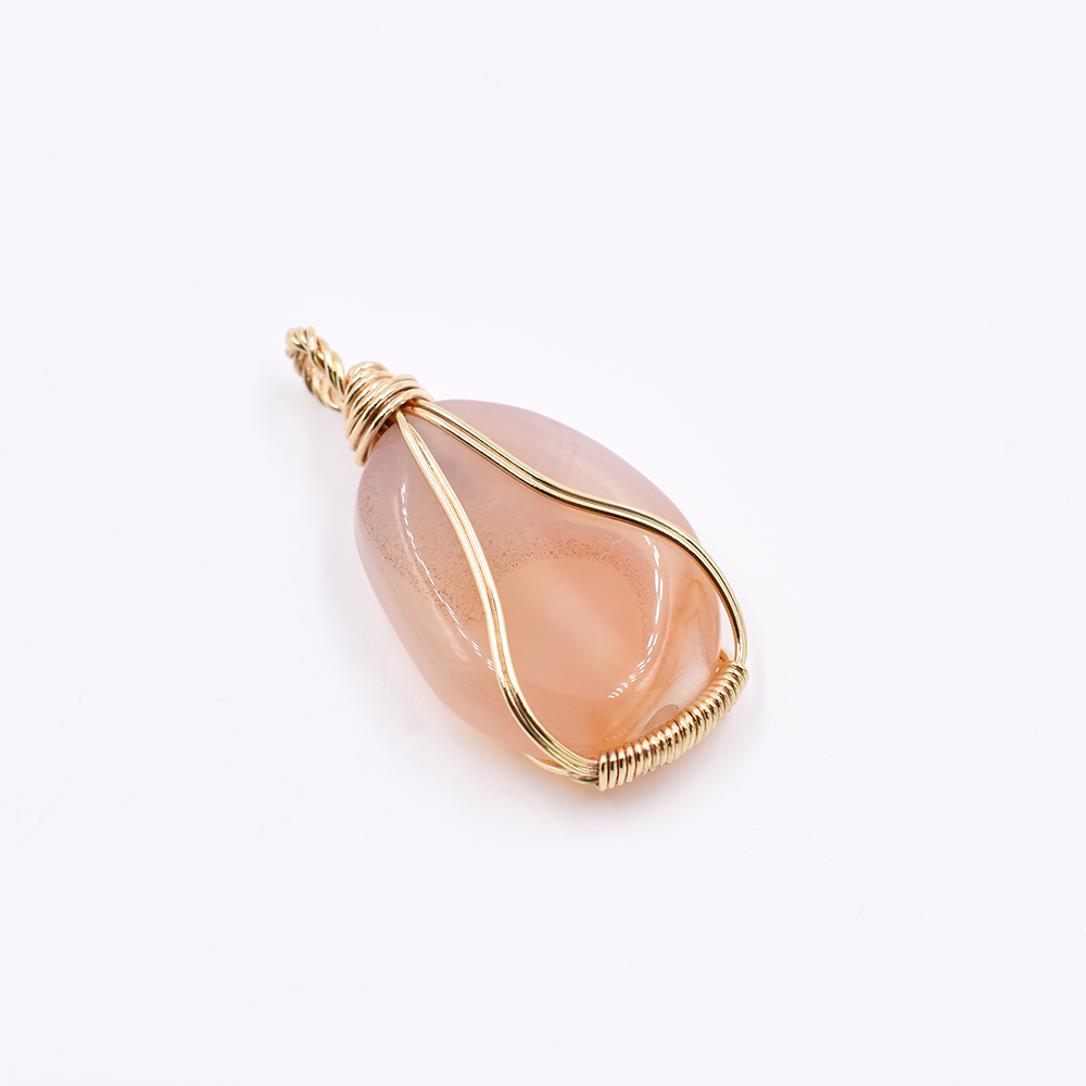 天然石チャーム 1カンつき 楕円形 オレンジ 38x20mm ゴールド(1ヶ)