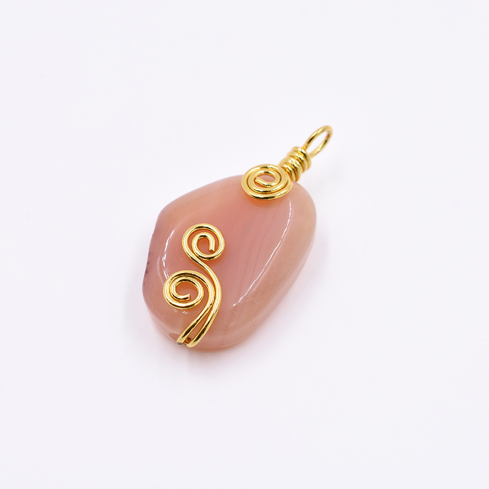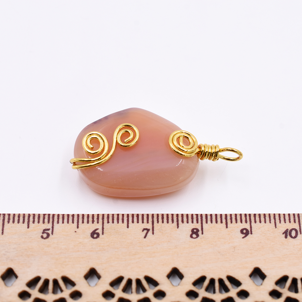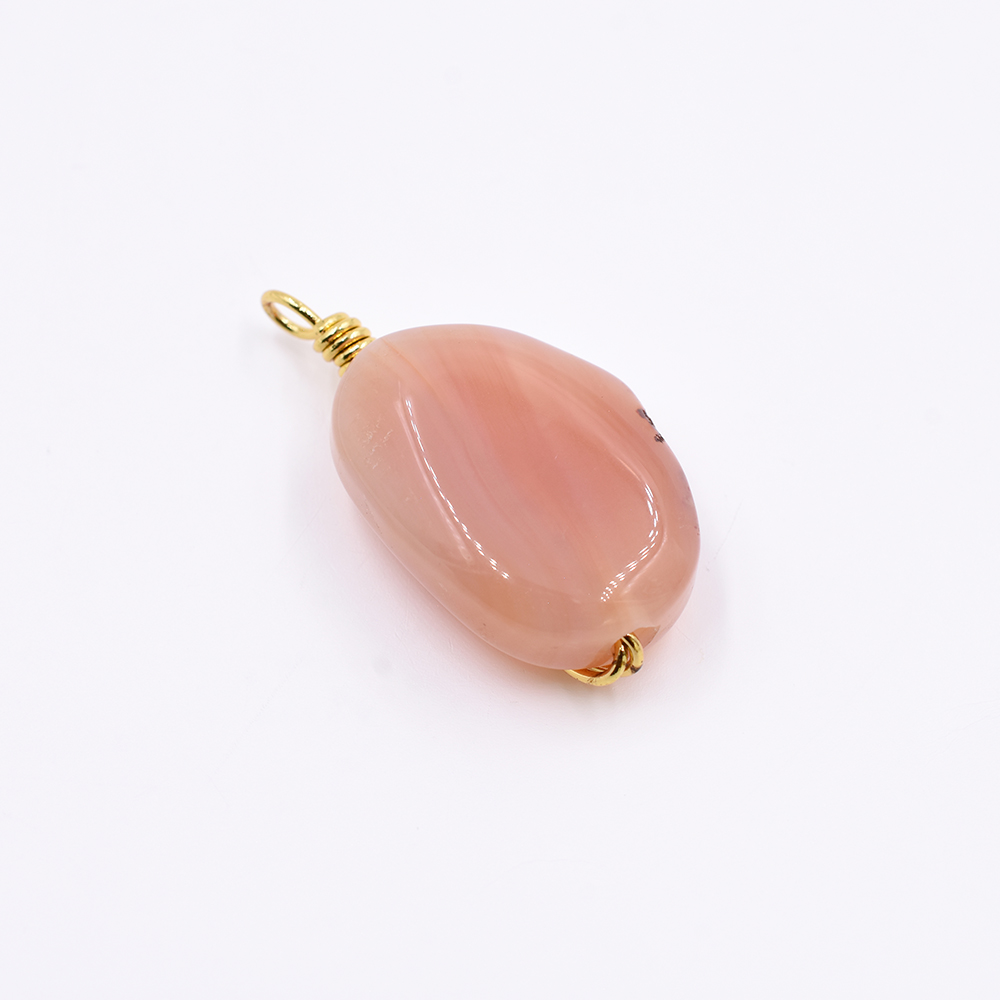 天然石チャーム 1カンつき 楕円形 オレンジ 35x19mm ゴールド(1ヶ)