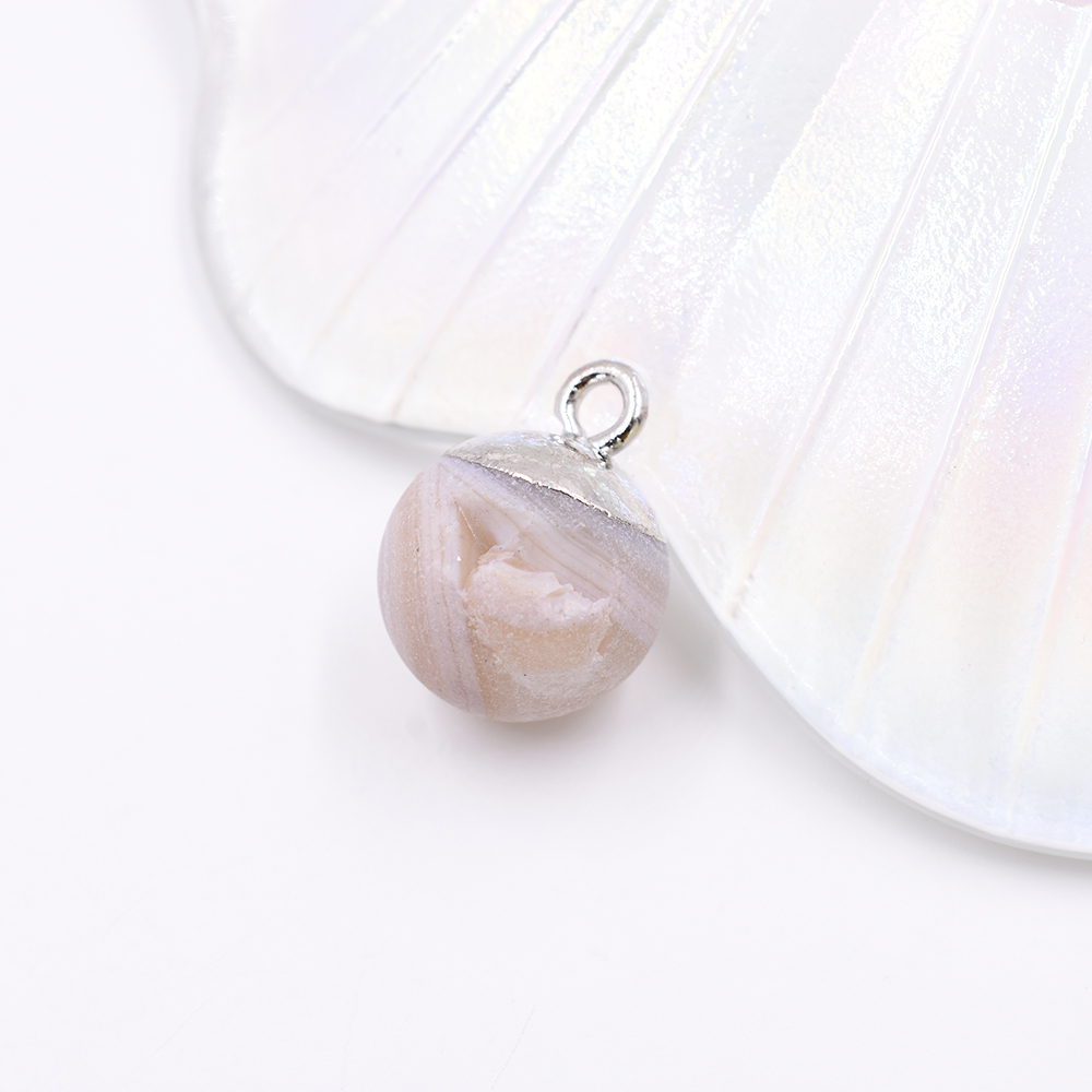 天然石チャーム 1カンつき 円形 アイボリー 19x14mm ロジウム(1ヶ)
