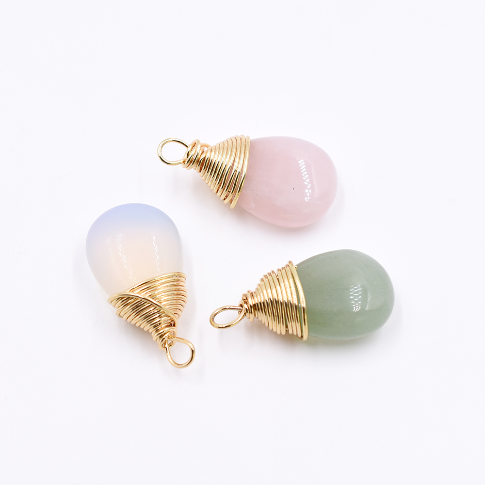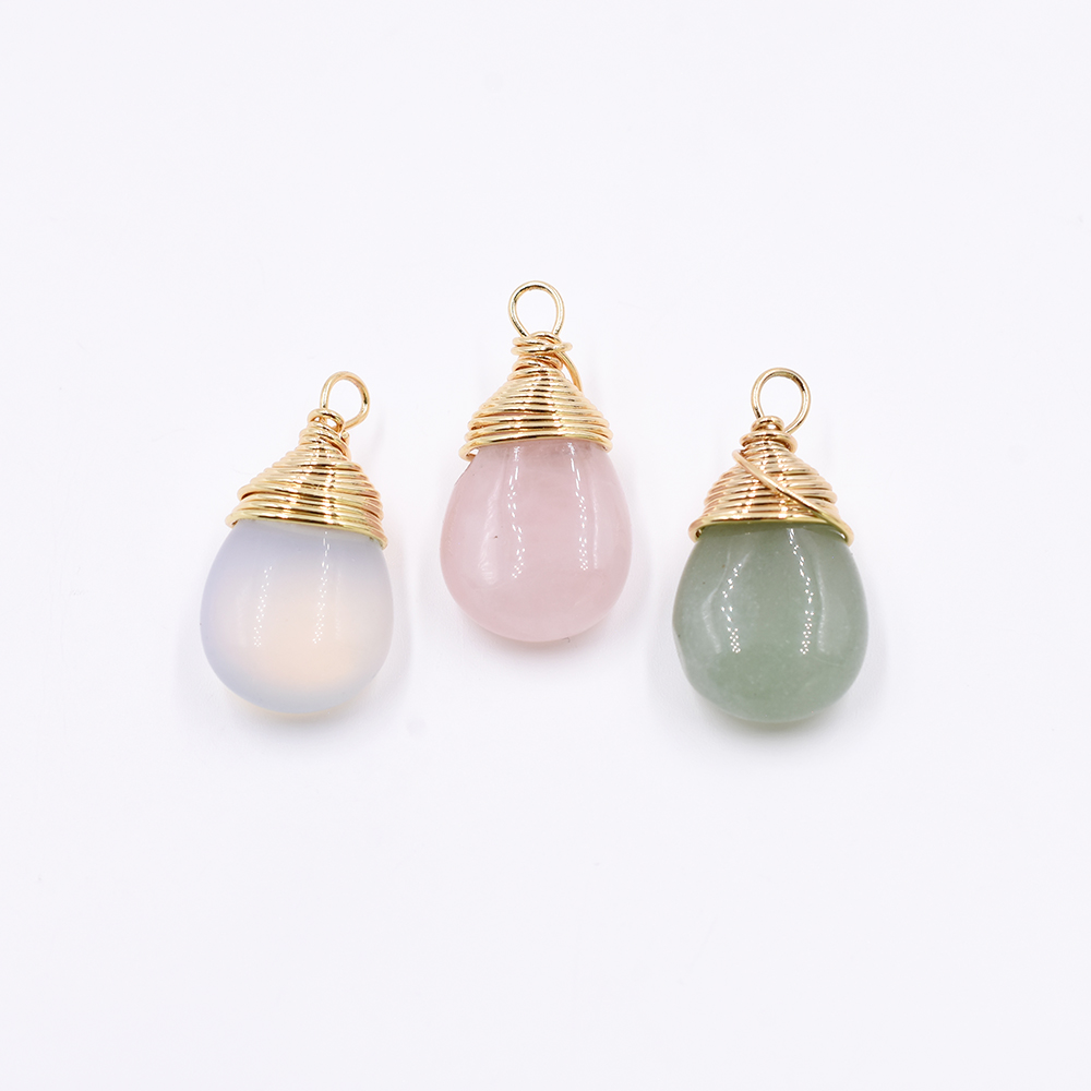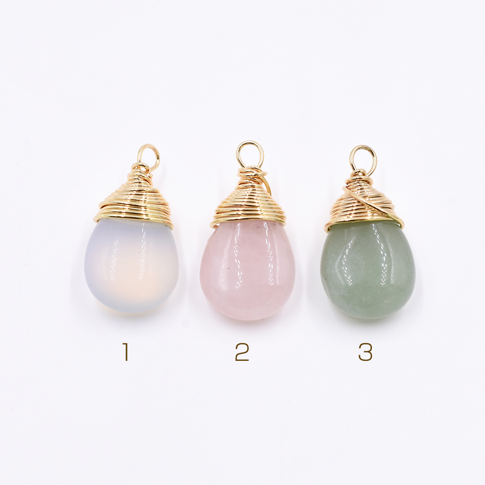 天然石チャーム 1カンつき 雫形 26x13mm 全3色 ゴールド(1ヶ)