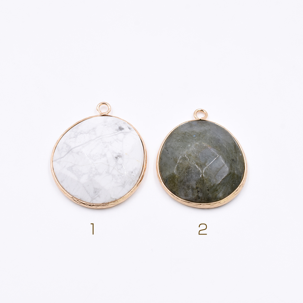 天然石フレームチャーム 楕円形カット 1カン 35x26mm 全2色 ゴールド (1ヶ)