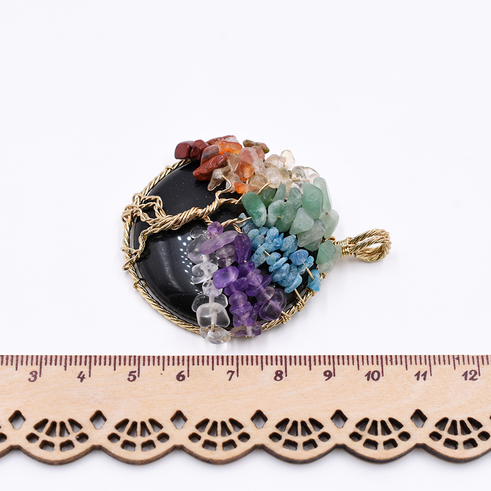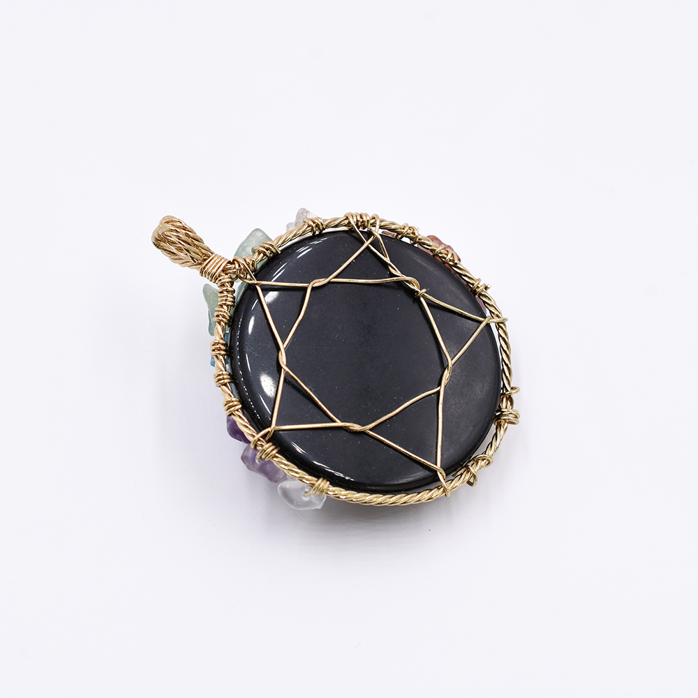 天然石フレームチャーム 円型 1カン ブラック 58x48mm ゴールド (1ヶ)