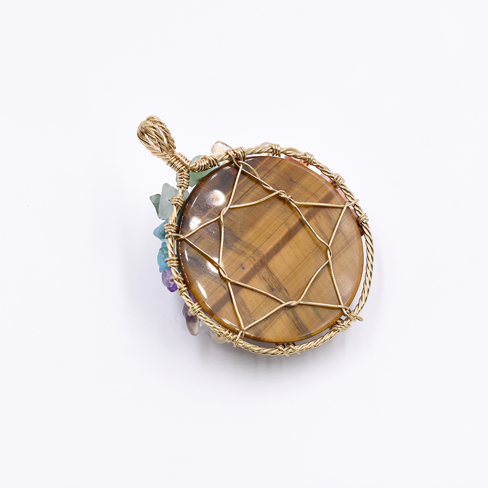 天然石フレームチャーム 円型 1カン ブラウン 59x46mm ゴールド (1ヶ)
