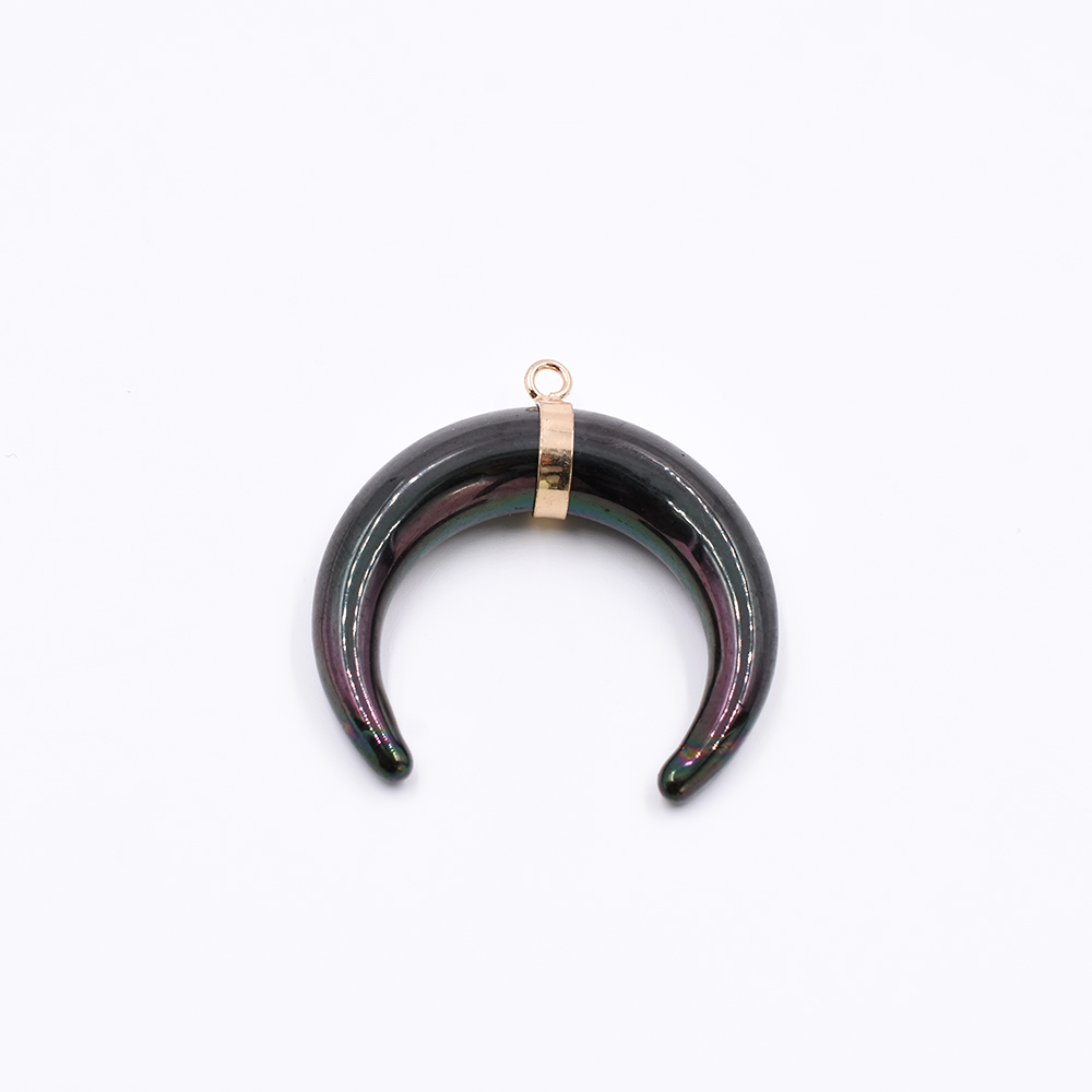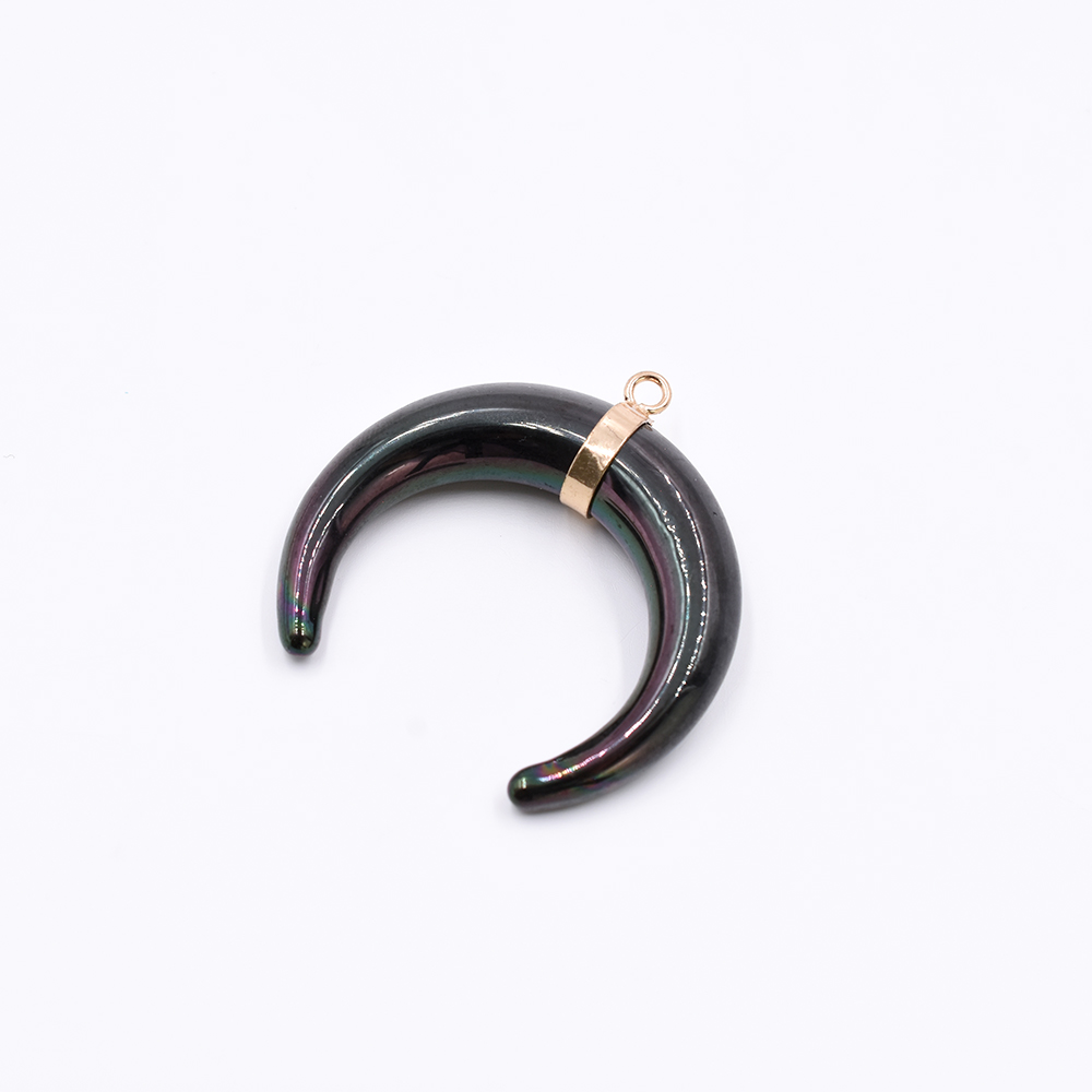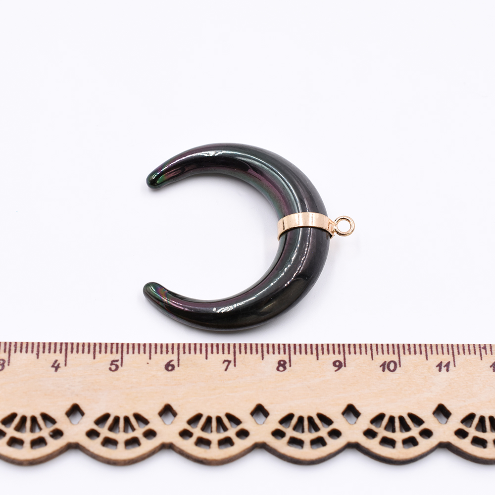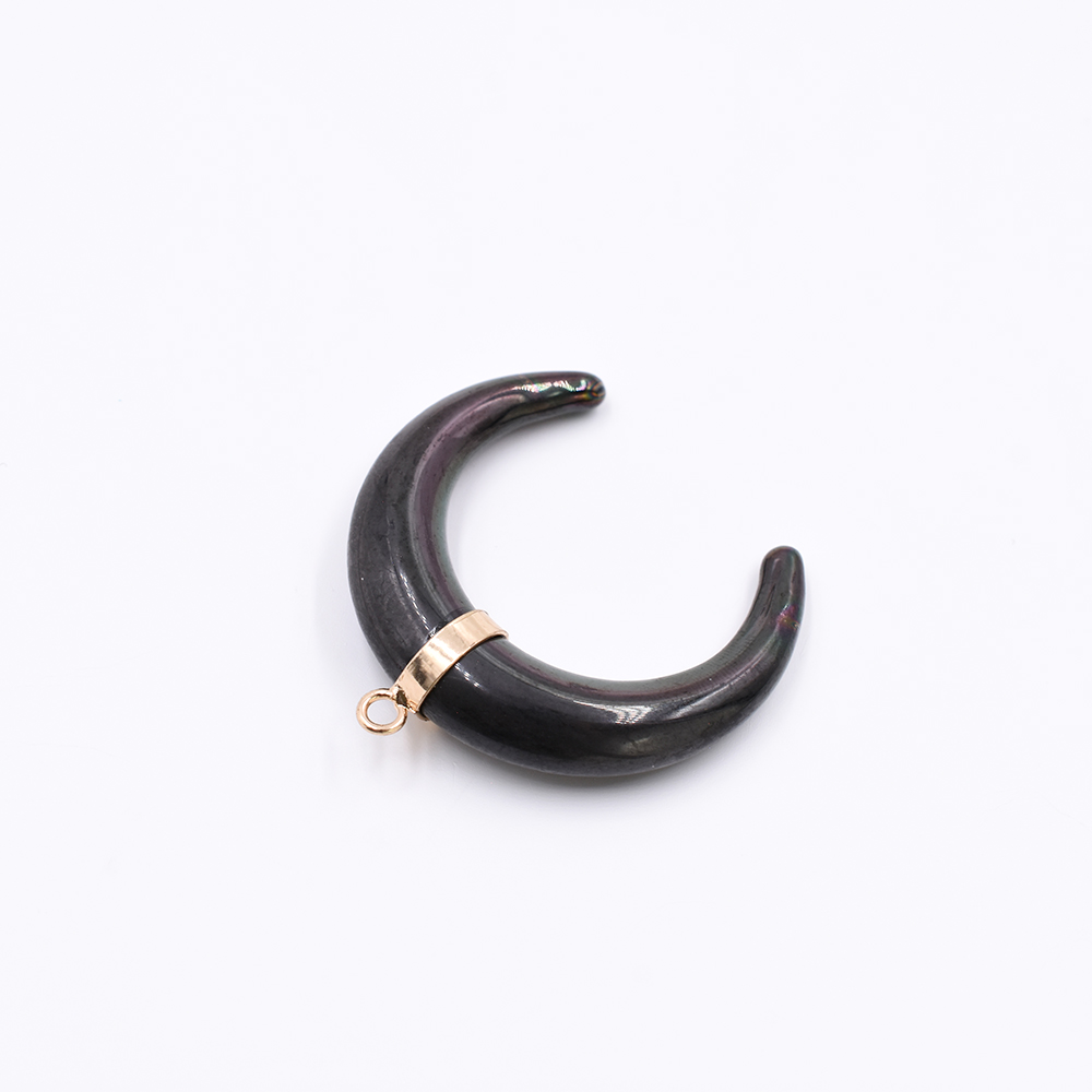 天然石チャーム 三日月形 1カン ブラック 39x39mm ゴールド (1ヶ)
