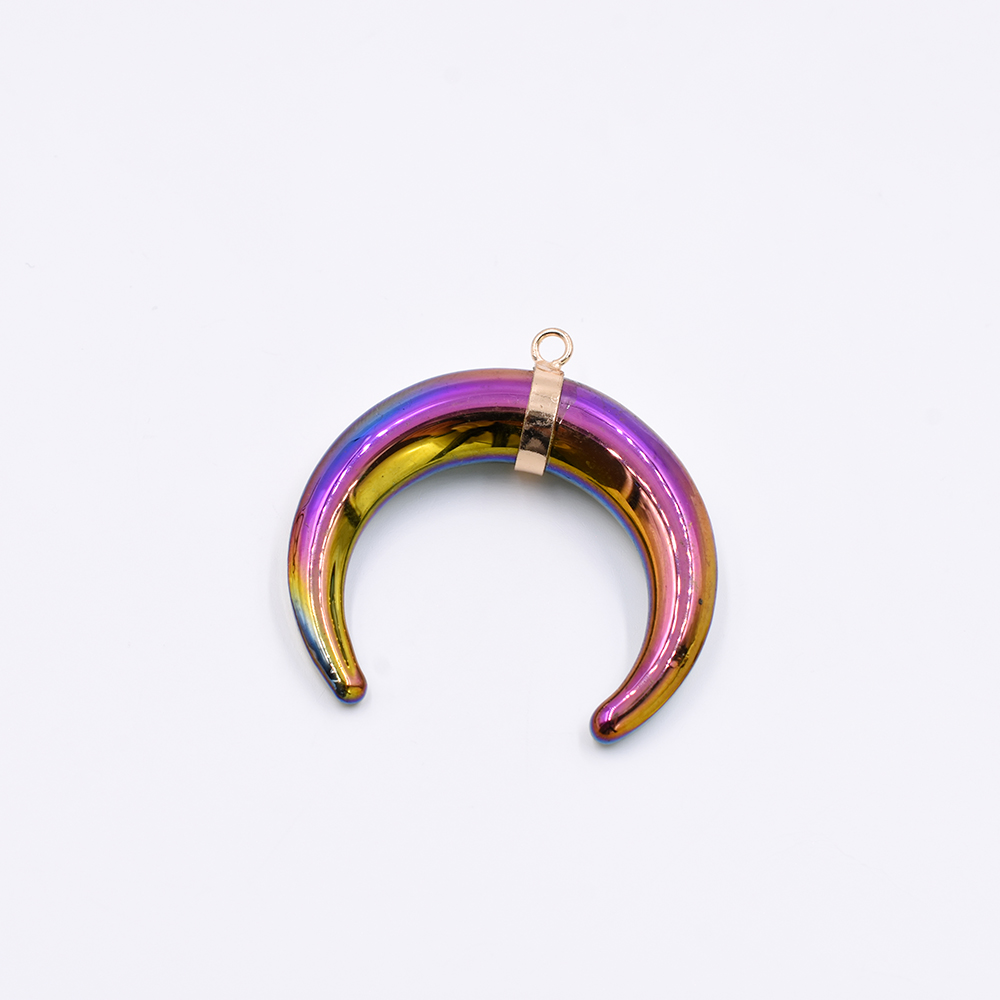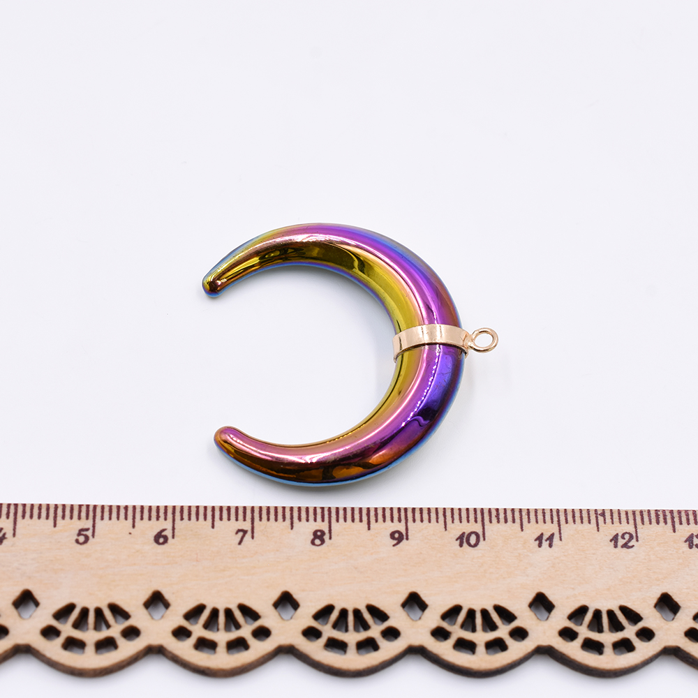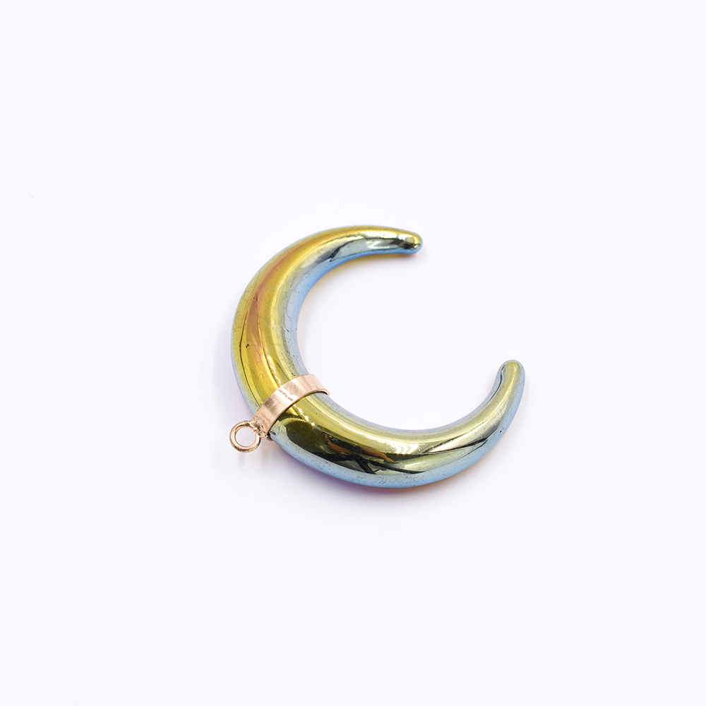 天然石チャーム 三日月形 1カン オーロラ 39x39mm ゴールド (1ヶ)