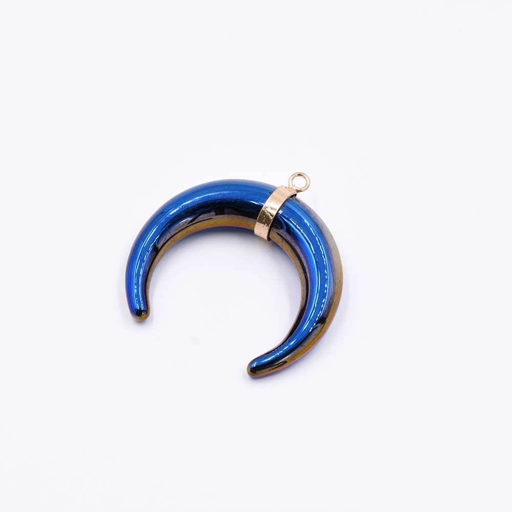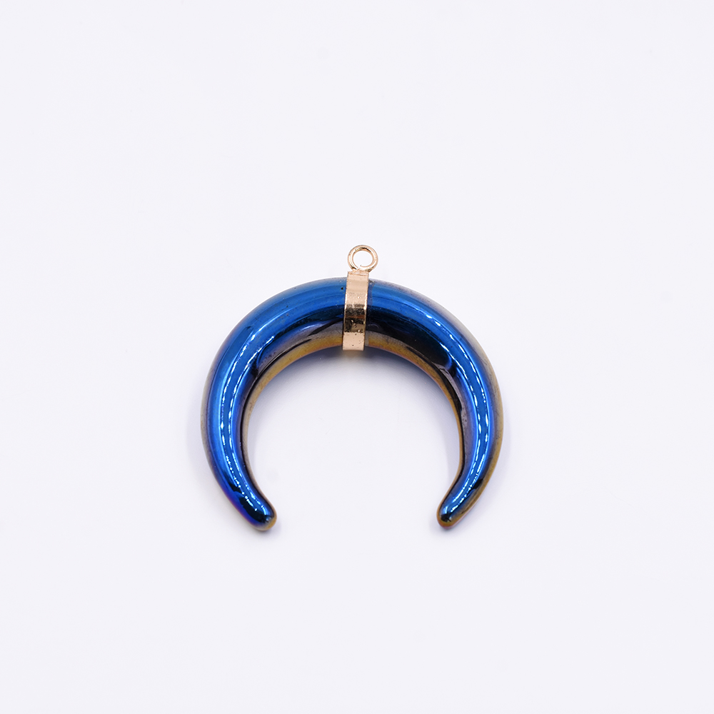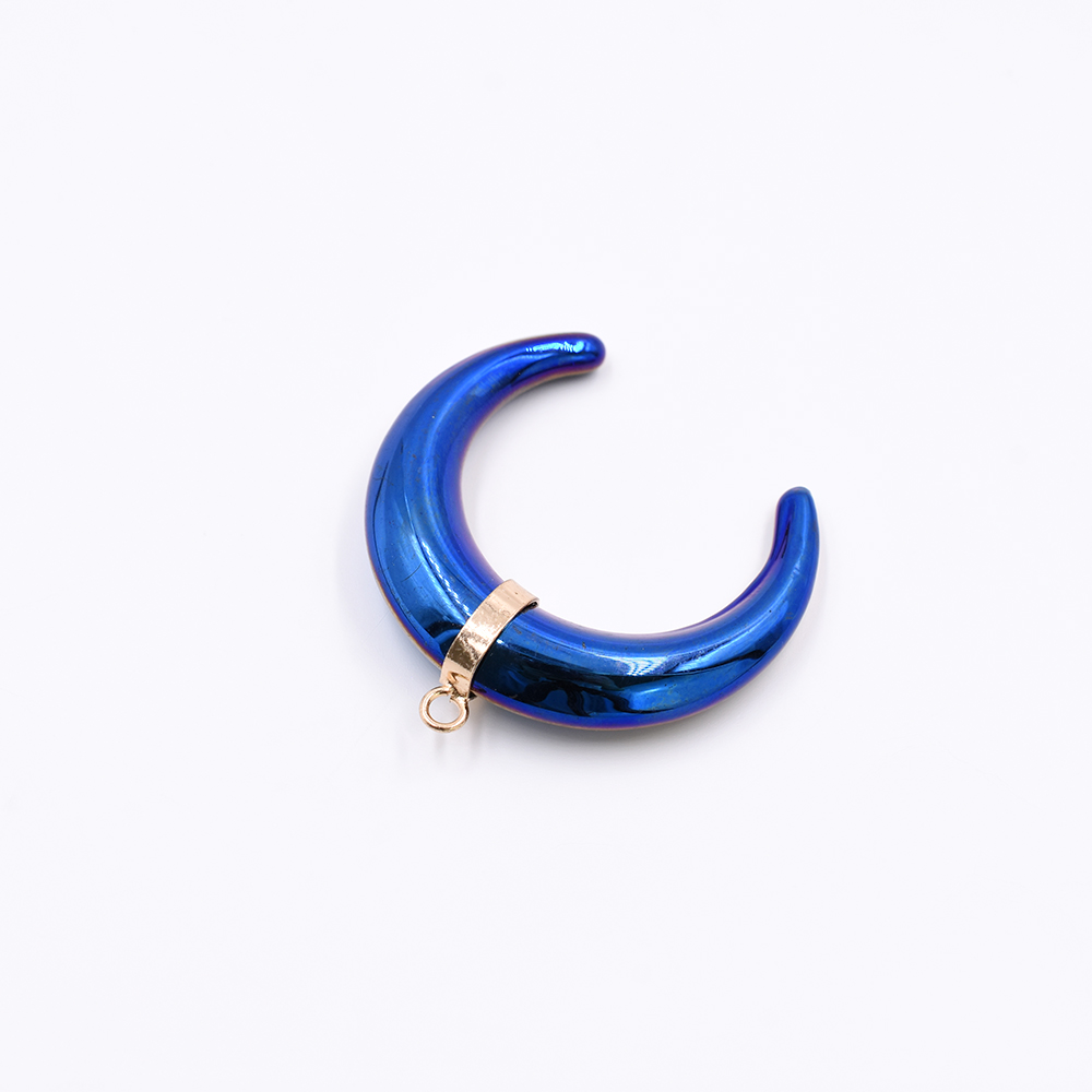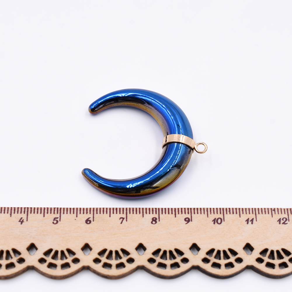 天然石チャーム 三日月形 1カン オーロラブルー 39x39mm ゴールド (1ヶ)