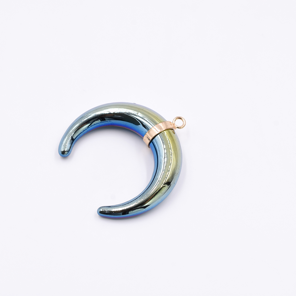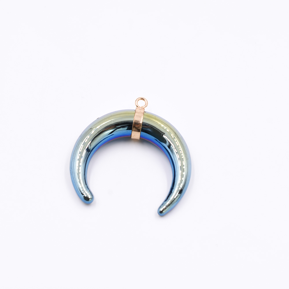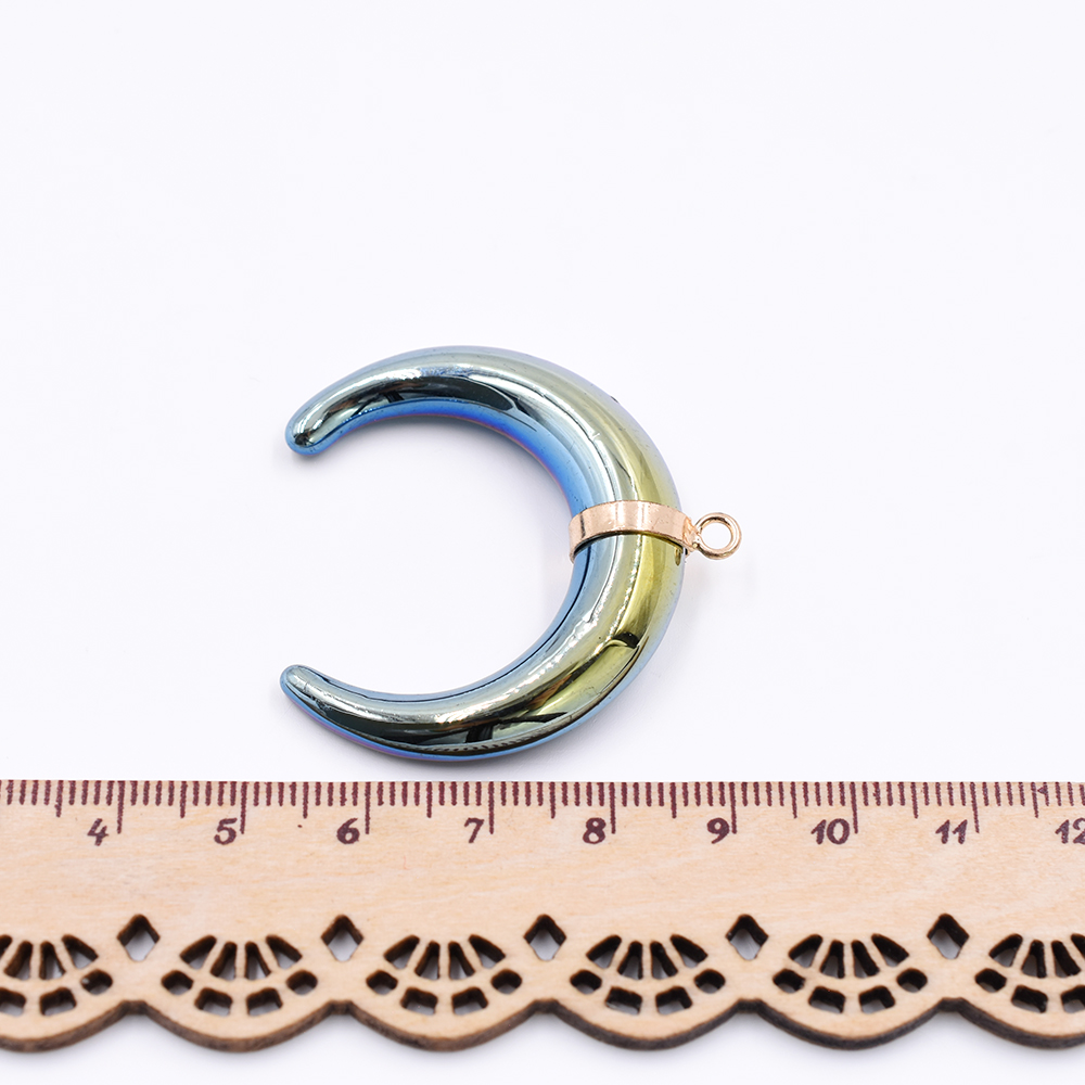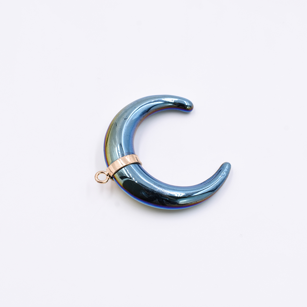天然石チャーム 三日月形 1カン ブルー 38x38mm ゴールド (1ヶ)