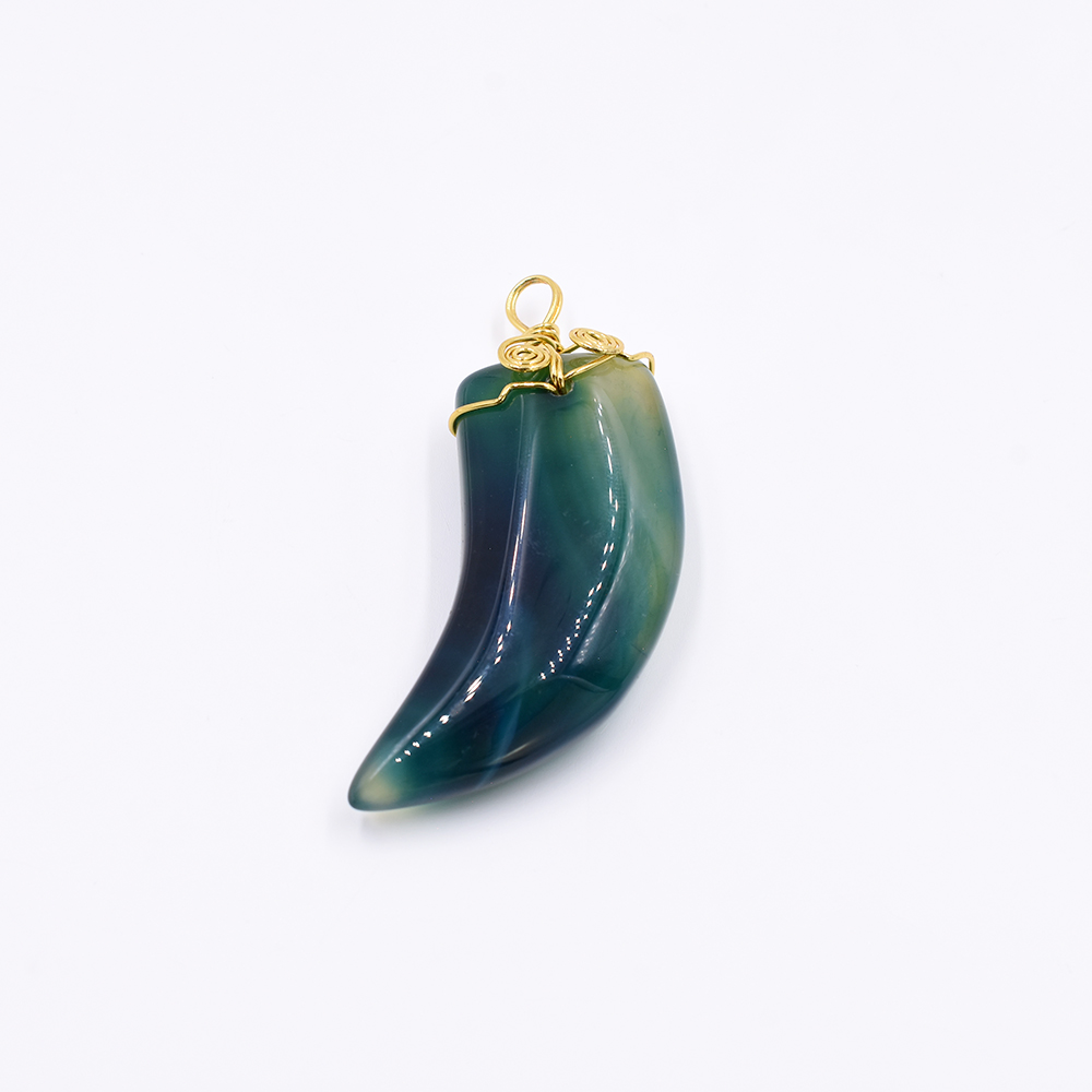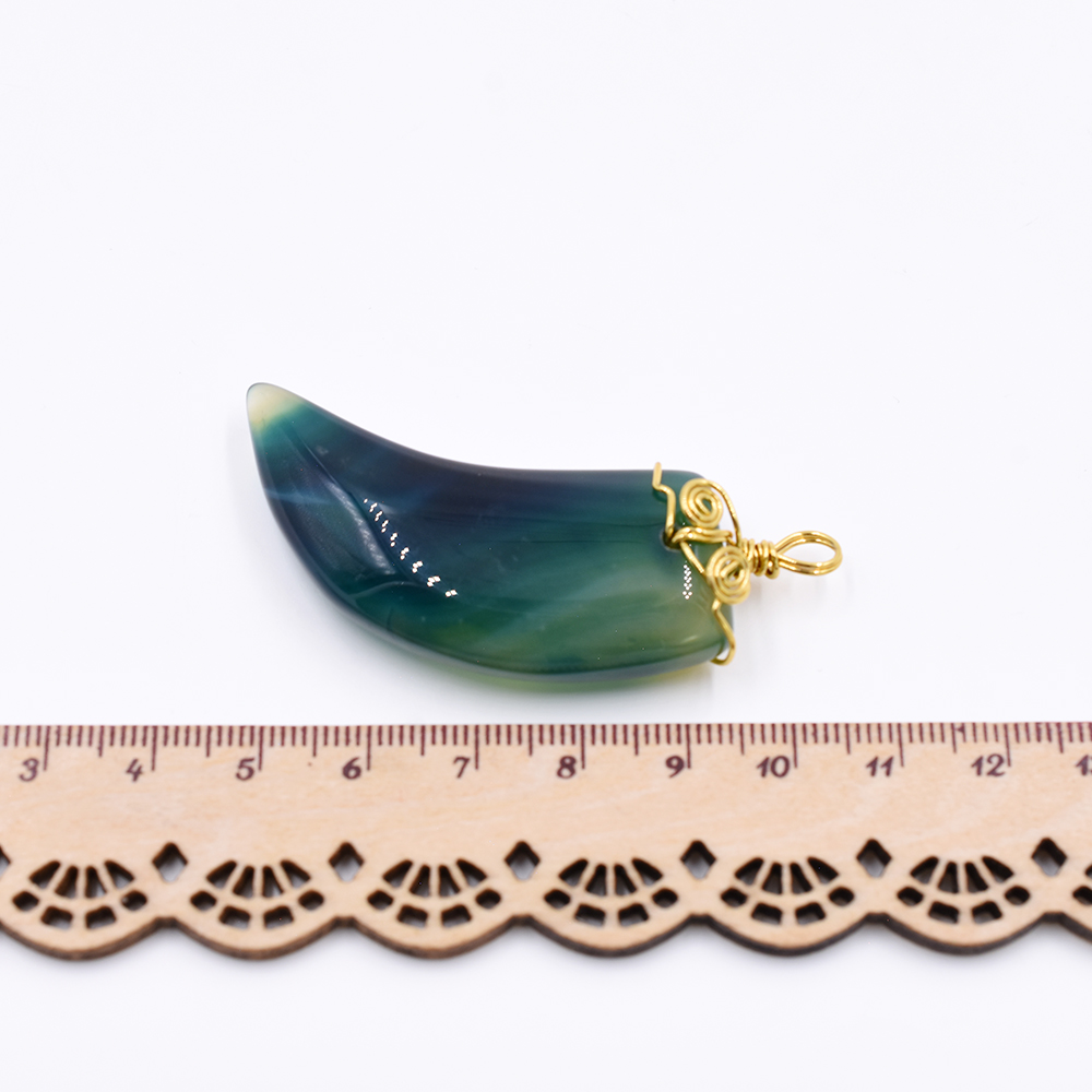 天然石ワイヤーチャーム アイボリー型 1カン グリーン 60x22mm ゴールド (1ヶ)