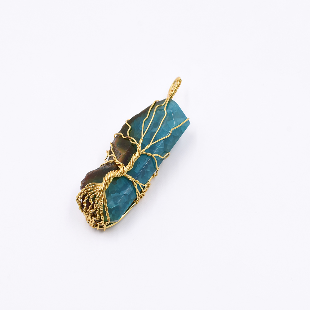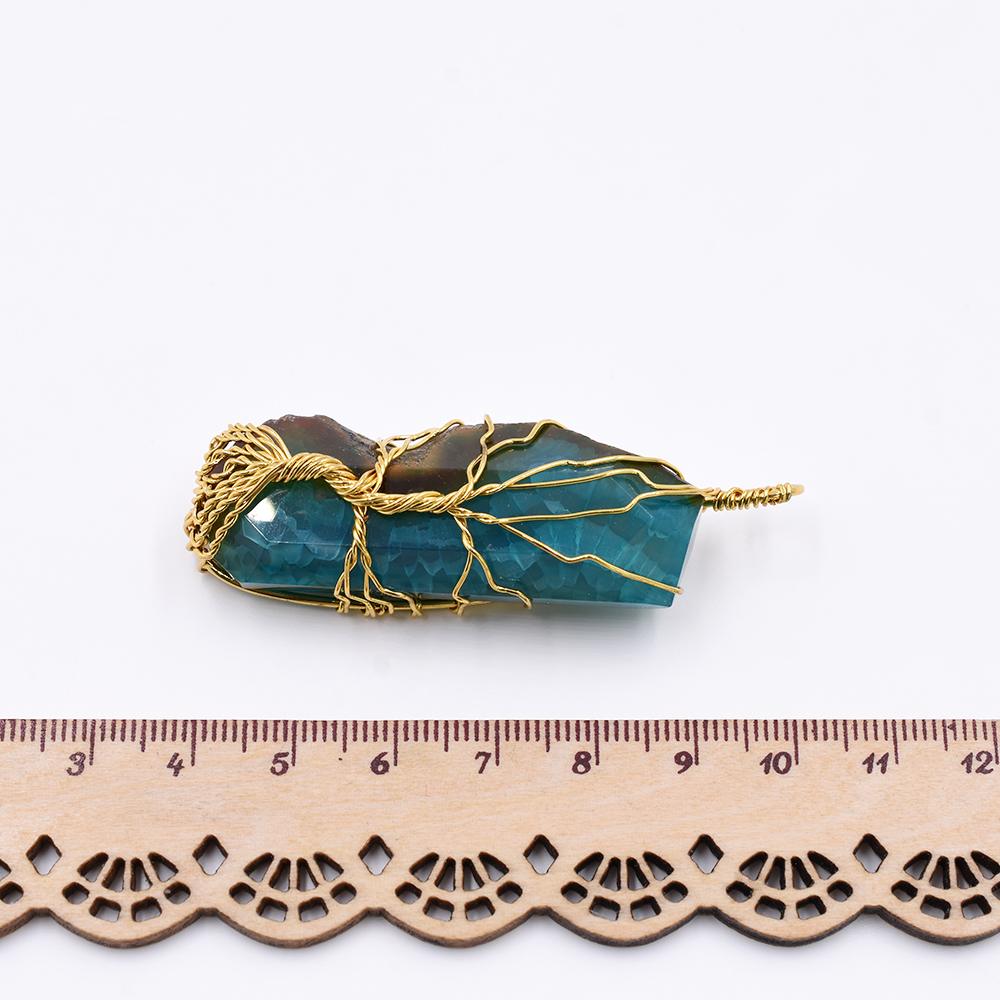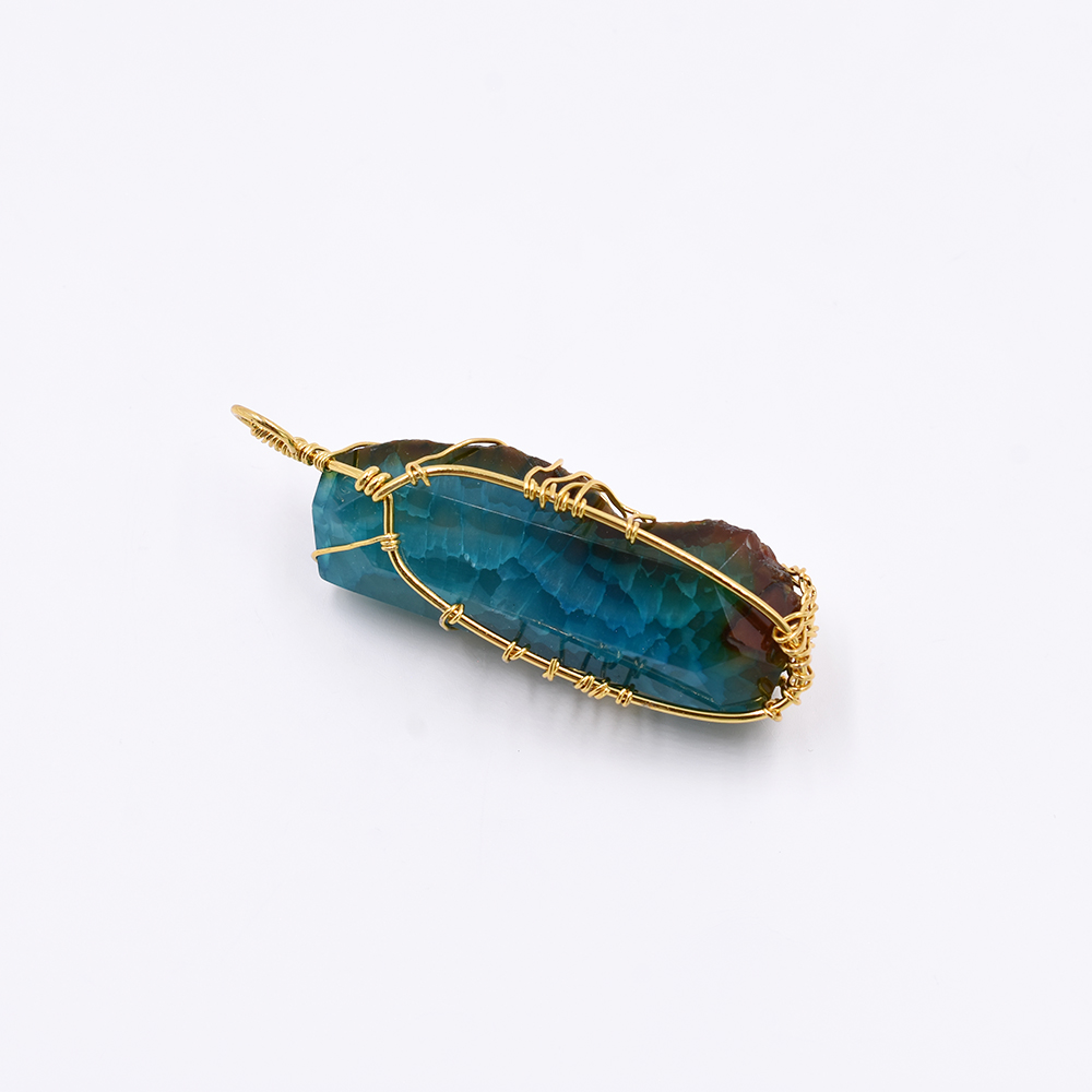 天然石ワイヤーチャーム 不規則型 1カン ブルー 62x19mm ゴールド (1ヶ)