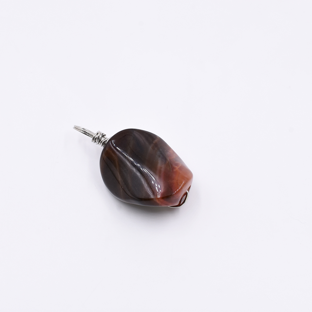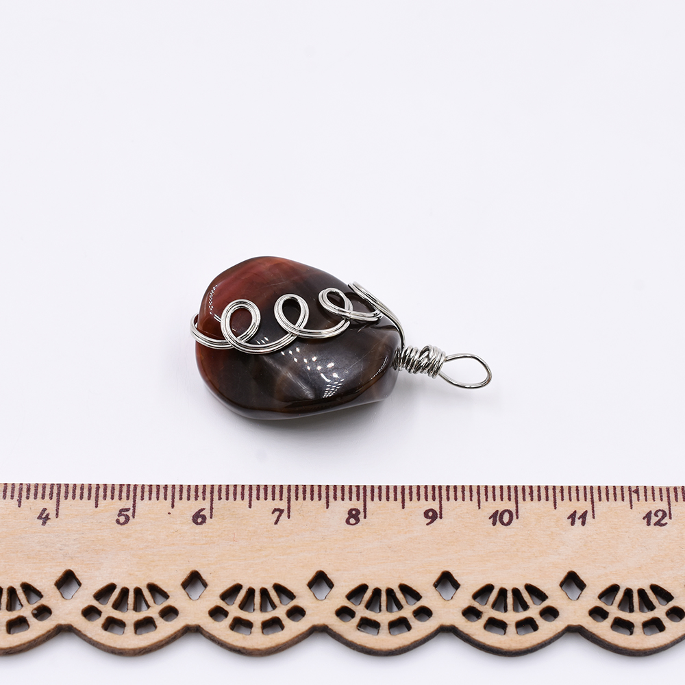 天然石ワイヤーチャーム 不規則型 1カン ブラウン 40x22mm ロジウム (1ヶ)