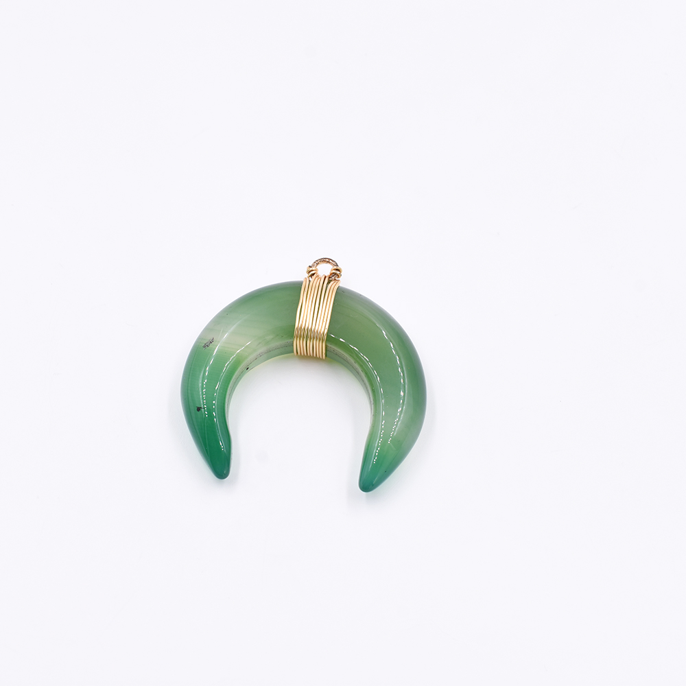 天然石チャーム 三日月形 1カン グリーン 39x40mm ゴールド (1ヶ)