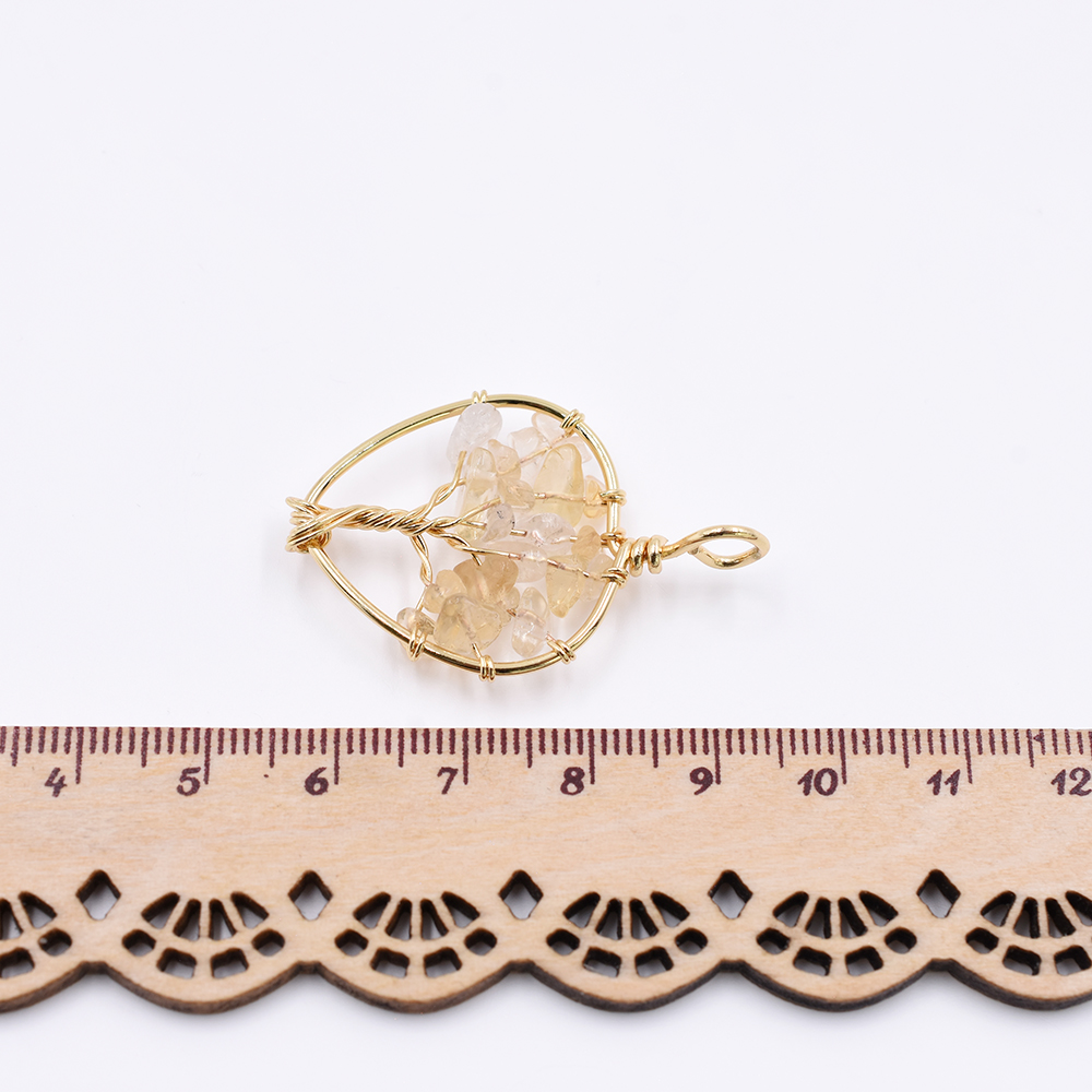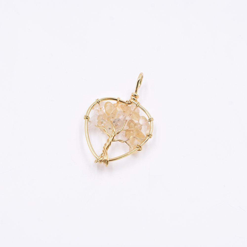 天然石ワイヤーチャーム ハート 1カン アイボリー 39x25mm ゴールド (1ヶ)