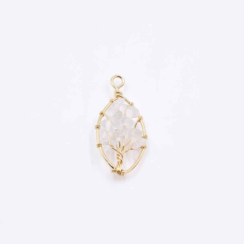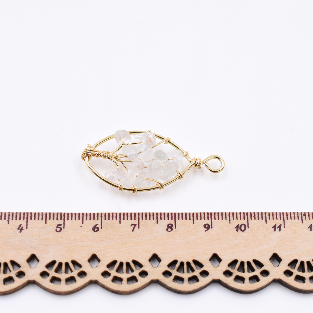 天然石ワイヤーチャーム 楕円形 1カン クリアクリスタル 40x19mm ゴールド (1ヶ)
