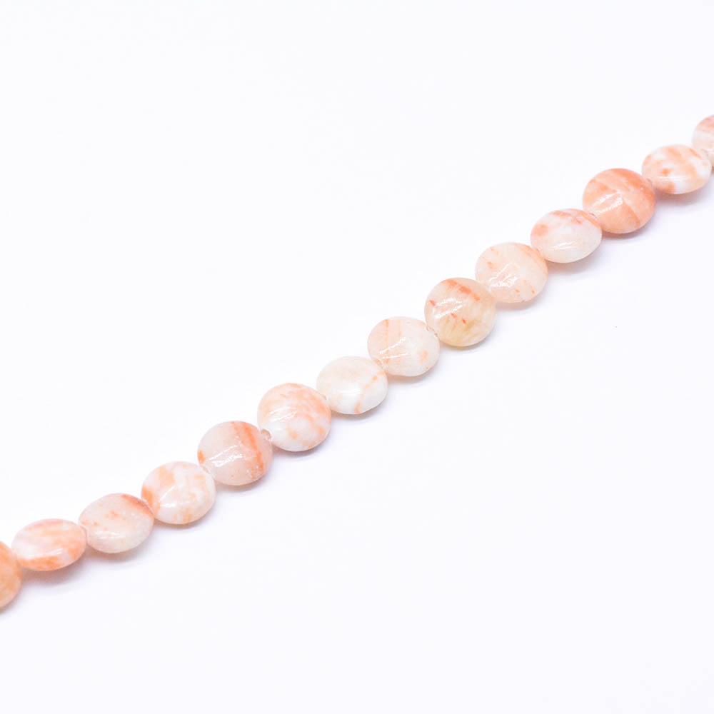 天然石ビーズ ライトレッドガーデンクォーツ ボタン型 1連(約50ケ)