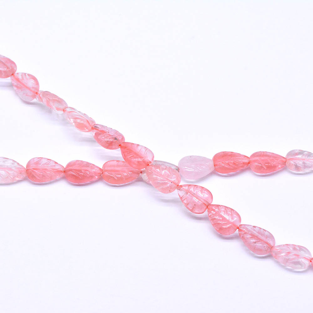 天然石ビーズ ピンクトルマリン リーフ葉 1連(約33ケ)