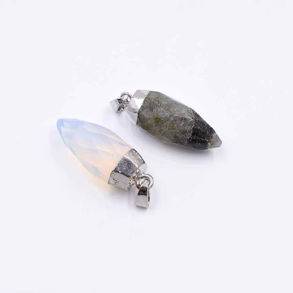 天然石ペンダントトップ 弾丸カット 1カン 全2色 33x12mm ロジウム (1ヶ)