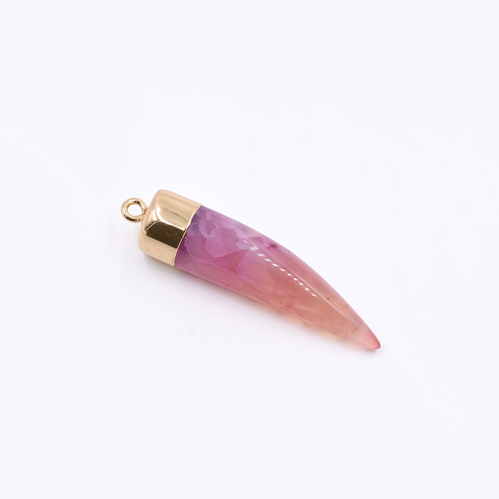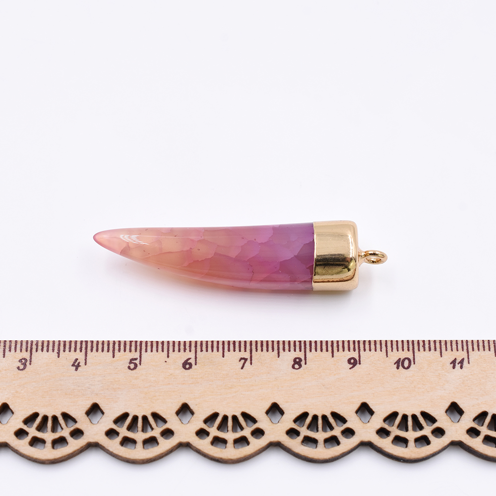 天然石チャーム アイボリー型 1カン パープル 55x13mm ゴールド (1ヶ)