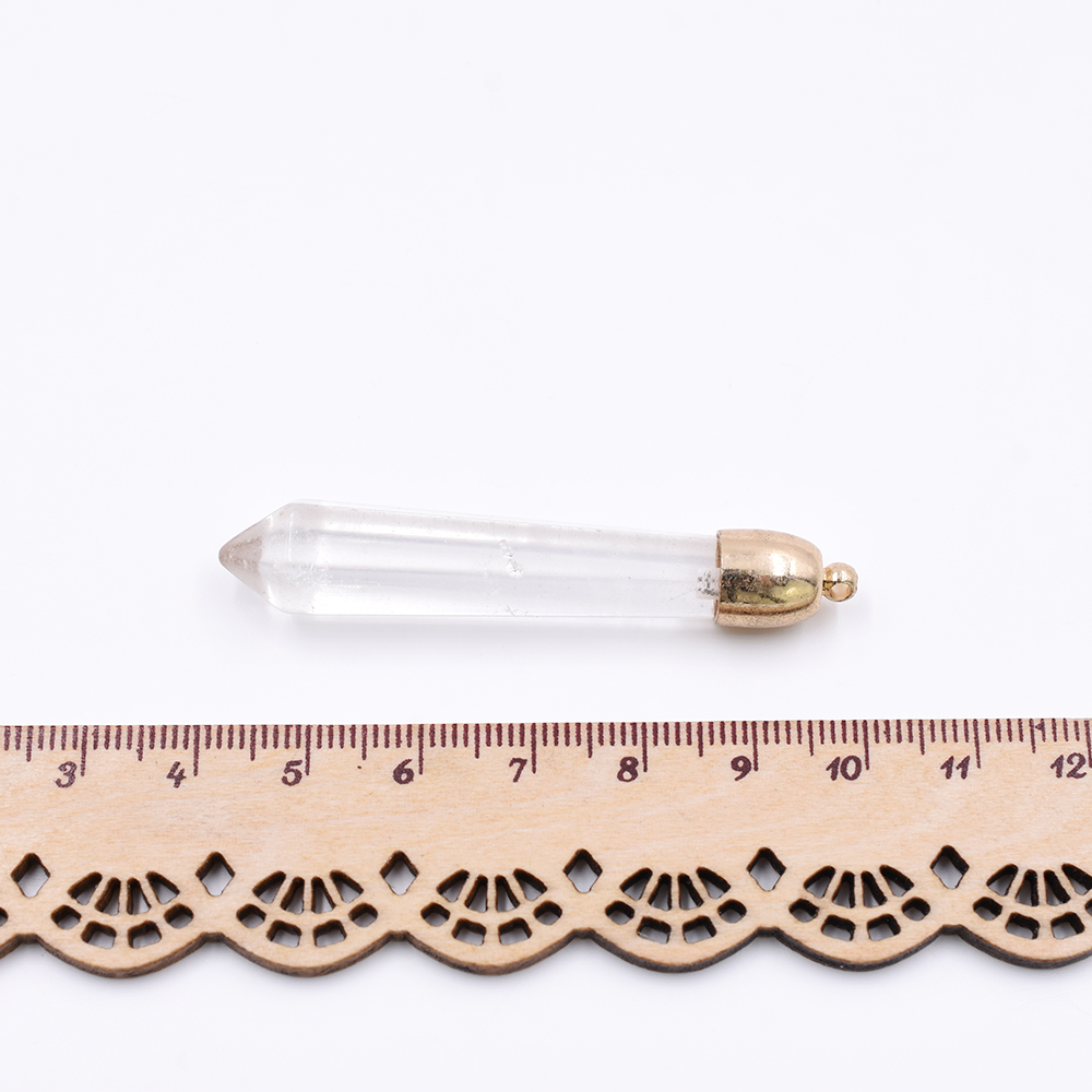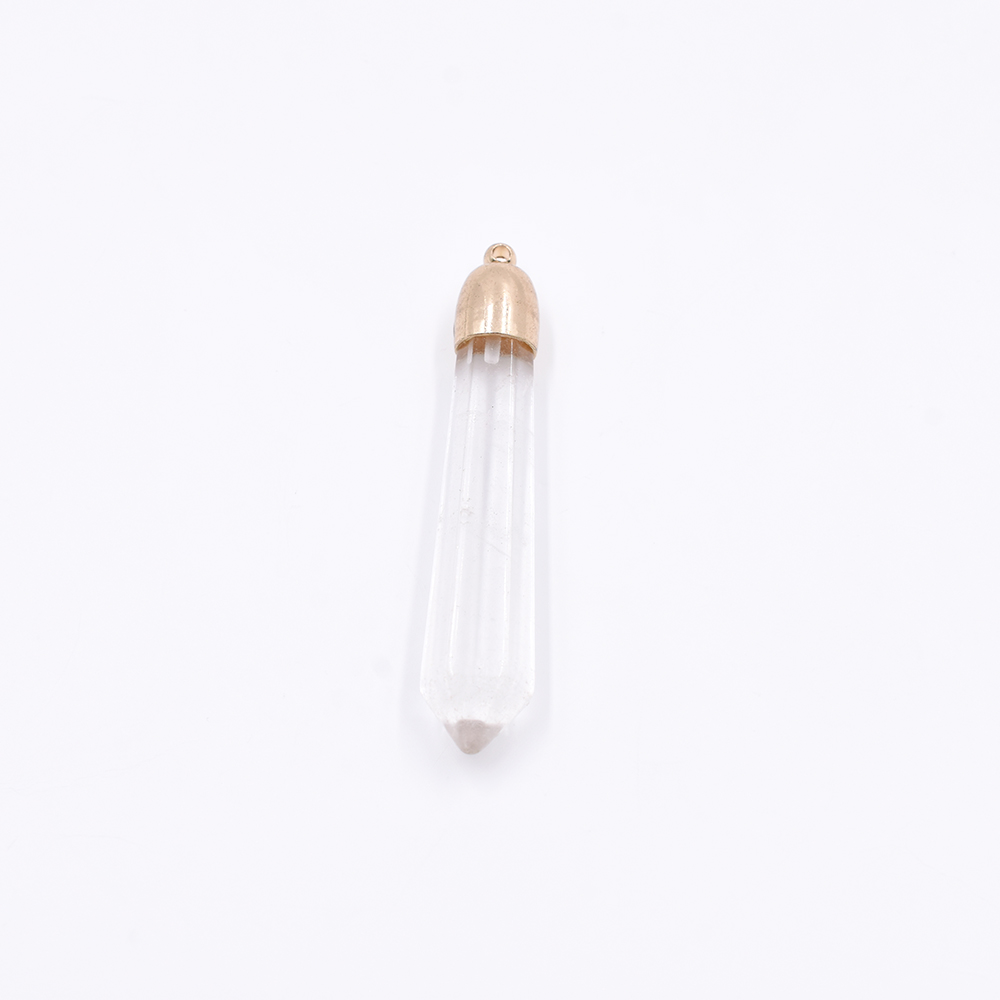 天然石チャーム ダイヤモンド型カット 1カン クリアクリスタル 58x11mm ゴールド (1ヶ)