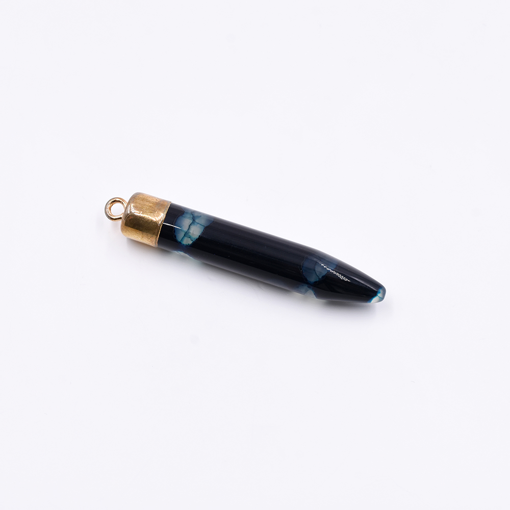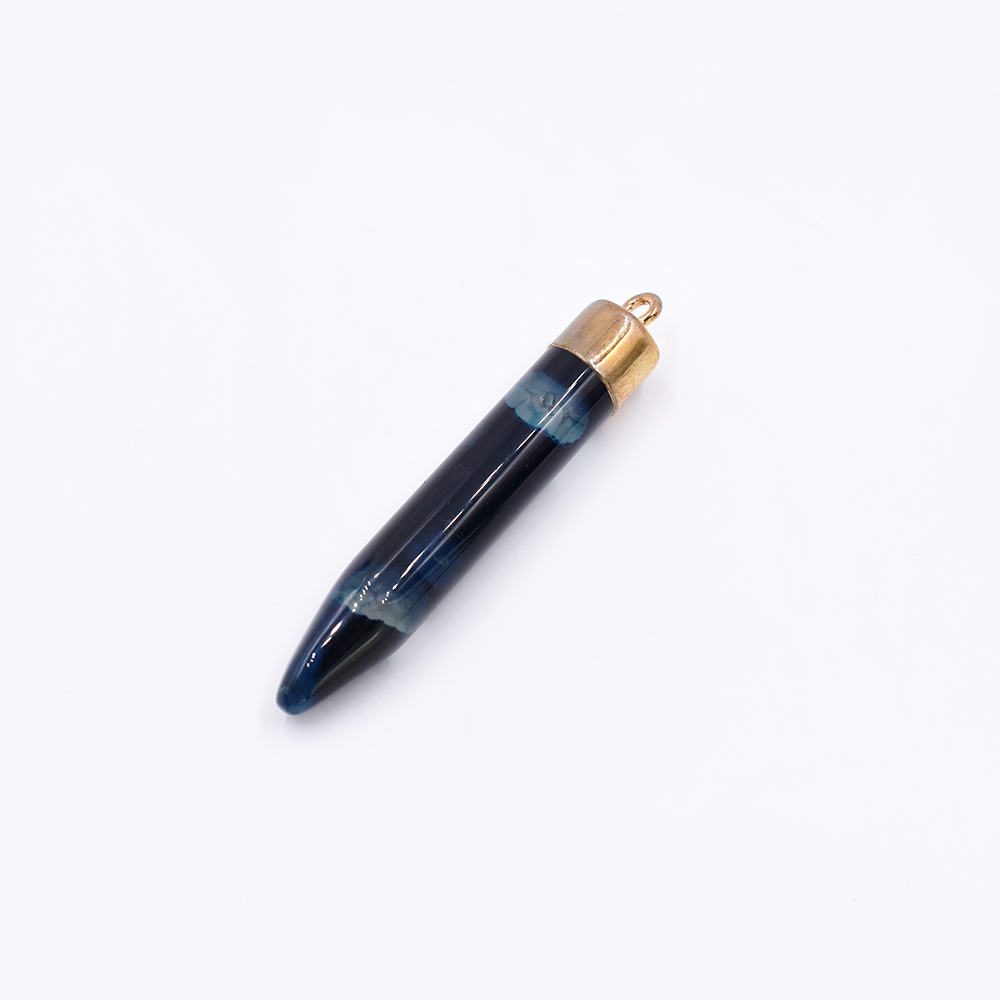 天然石チャーム 弾丸型 1カン ブルー 59x10mm ゴールド (1ヶ)