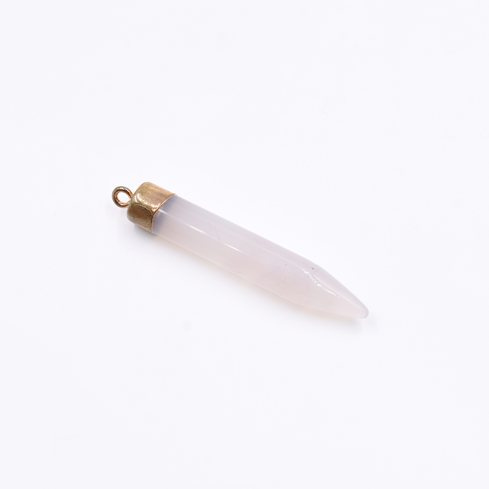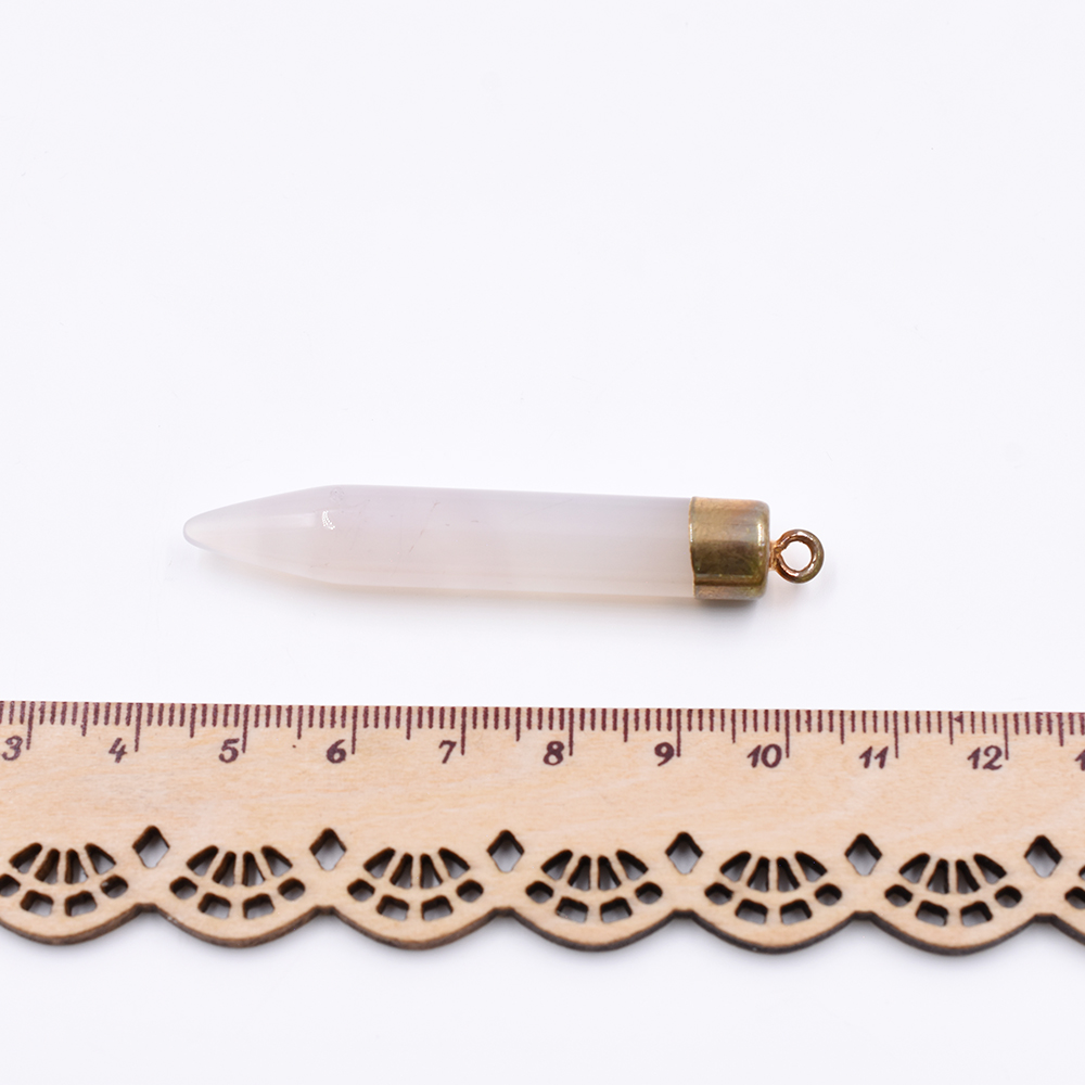 天然石チャーム 弾丸型 1カン アイボリー 60x10mm ゴールド (1ヶ)
