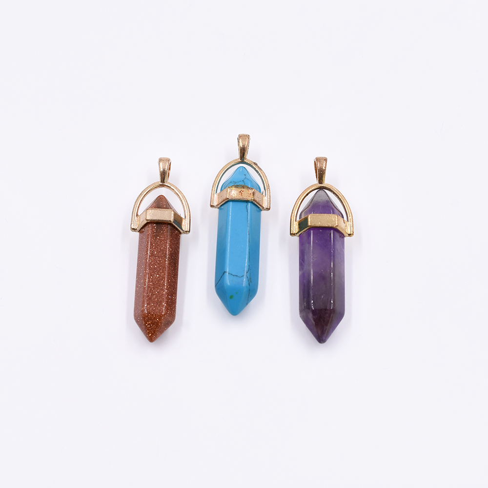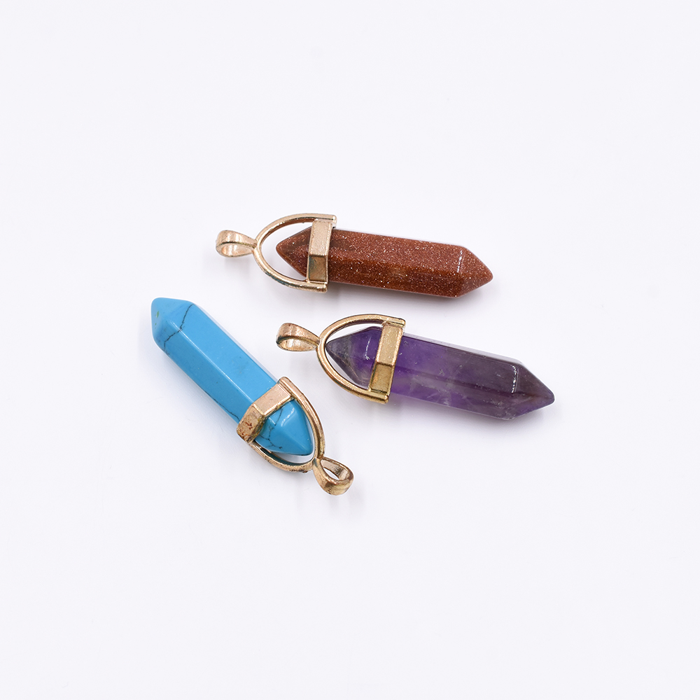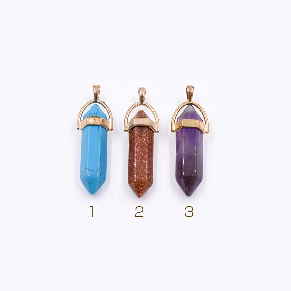 天然石チャーム 弾丸型カット 1カン 全3色 41x13mm ゴールド (1ヶ)