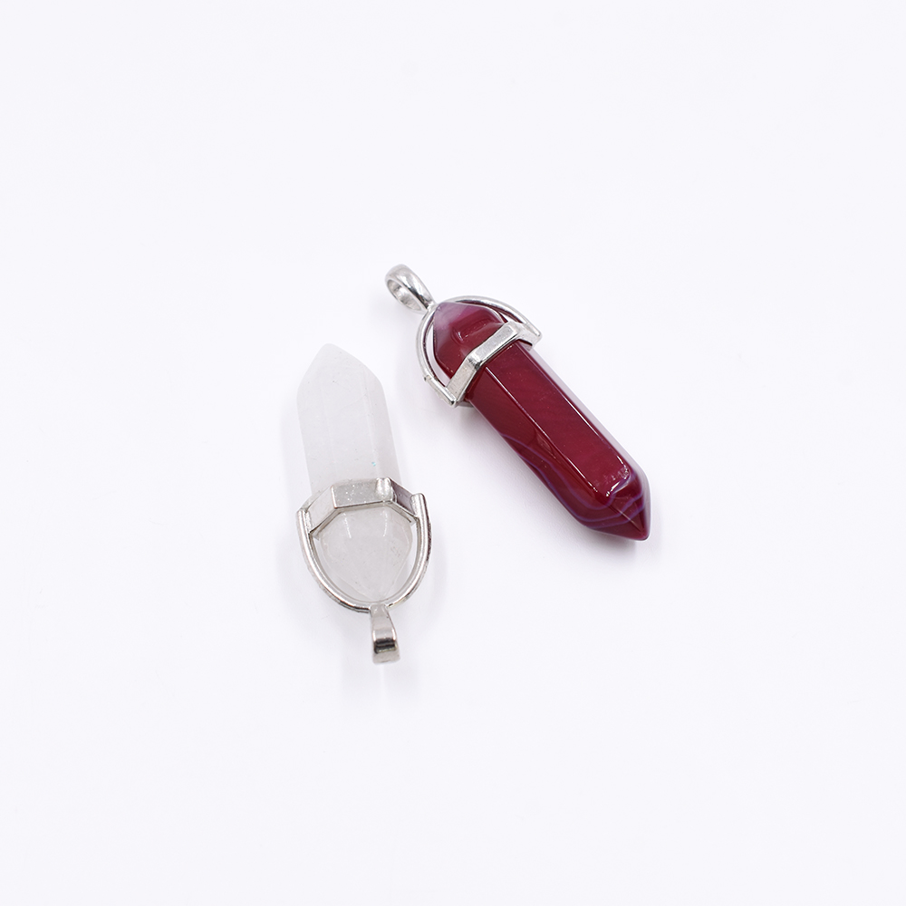 天然石チャーム 弾丸型カット 1カン 全2色 40x13mm ロジウム (1ヶ)