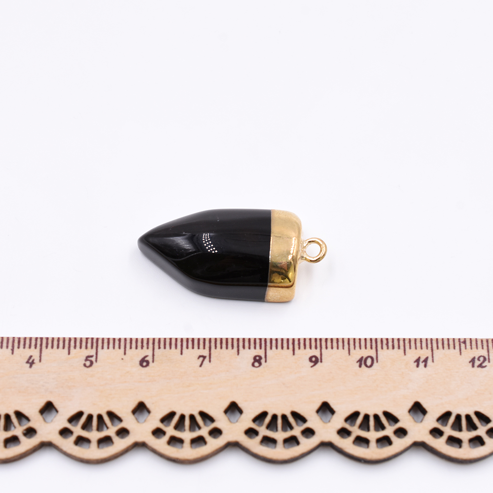 天然石チャーム 不規則型 1カン ブラック 35x17mm ゴールド (1ヶ)