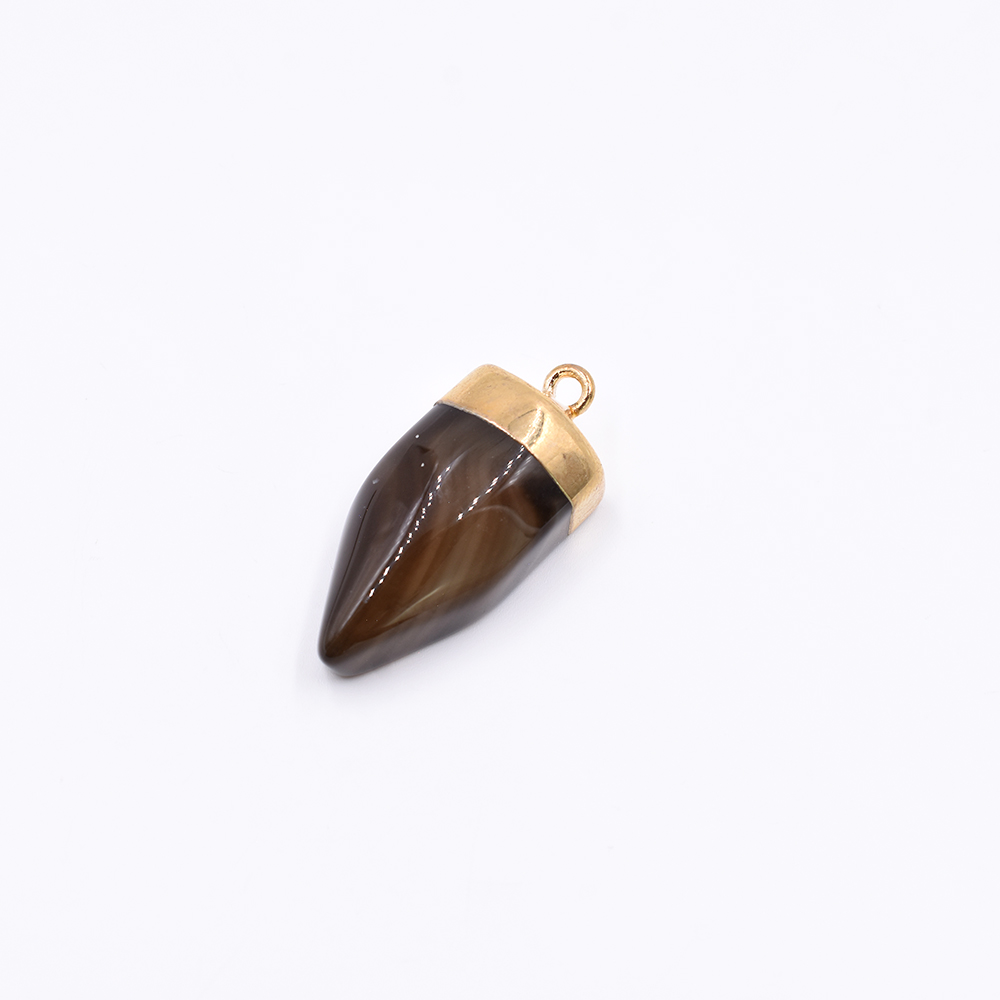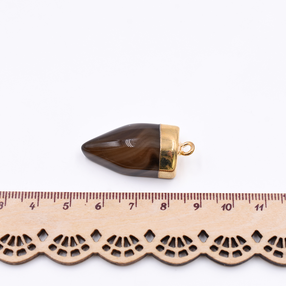 天然石チャーム 不規則型 1カン ブラウン 36x16mm ゴールド (1ヶ)