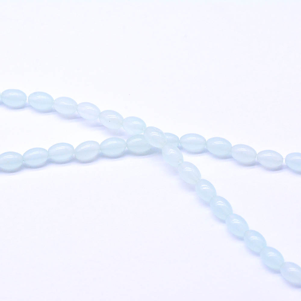 天然石ビーズ ミルキーアクアマリンガラス 楕円形 1連(約48ケ)