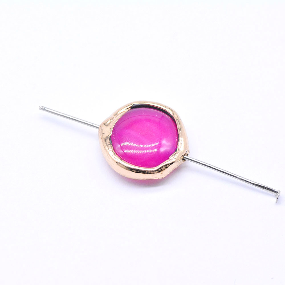 天然石ビーズ メノウ 枠付き ラウンド 17×18mm ゴールド (1ヶ)